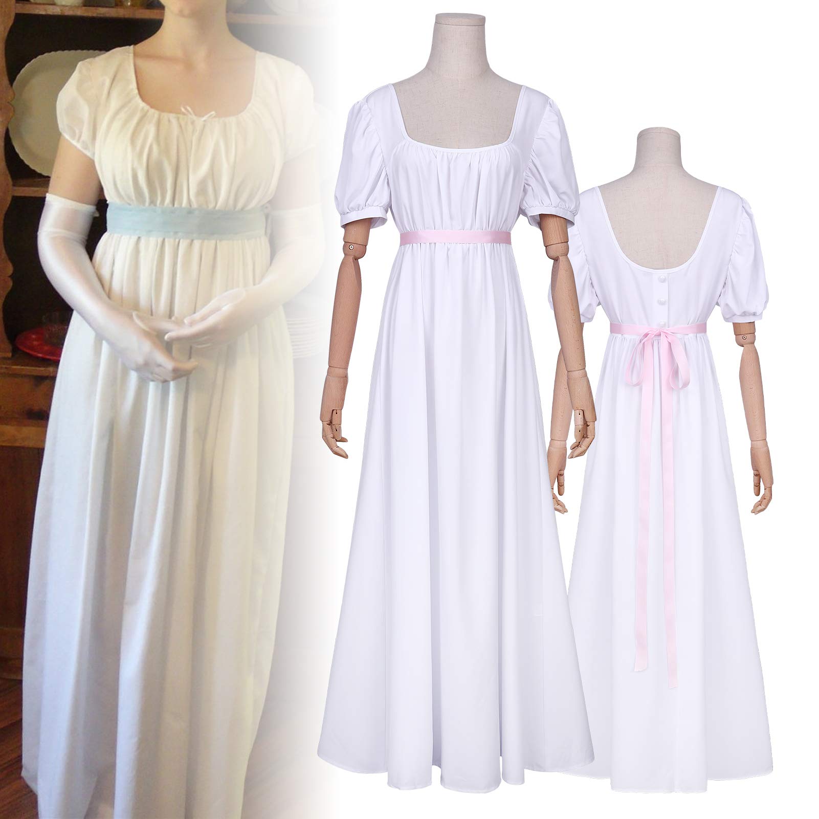 Description Women's Dress Jane Austen Regency Dress with Sash, Victorian Tea Party Gown - Material: 95% polyester, 5% spandex - Size: S, M, L, XL, XXL, XXXL - Season: Spring, Summer, Autumn - Style: Regency era - Package Includes: 1 * Dress, 1 * Widened Ribbon Belt FEATURES: 1. Vintage Open Square Neckline 2. Short and Puff Sleeves 3. Contrast Color Waist Belt 4. U-back with Function Buttons 5. Decorated with Removable Sash 6. A-line Silhouette 7. Elastic Fabric, Thick and Silky Elegant Medieval Victorian dress also serve as make charming everyday dresses, bridesmaid dresses, birthday party, maternity wear and etc. Also for casual wear, dance ball party, birthday party, wedding, cocktail party, photo shoot, holiday party, Halloween Warm Tip: The fabric of the clothes may have some creases if the package is stored for a long time, and it can be slightly smoothed out by proper ironing before wearing.