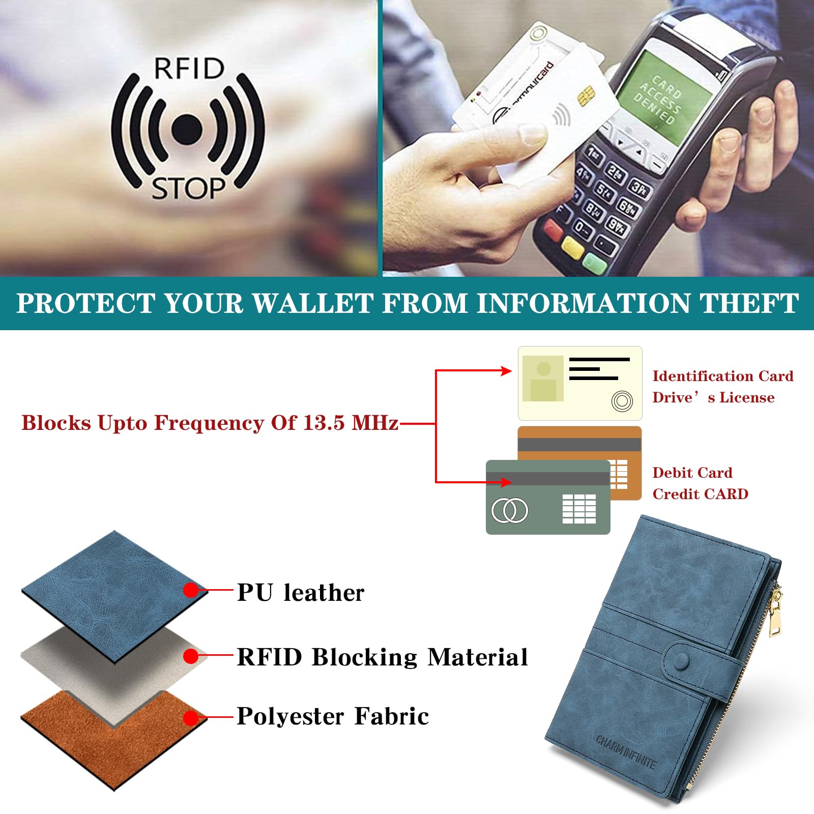 RFID Blocking Technology: Protect your personal and financial information with our RFID passport holder. The built-in RFID blocking shield material helps to prevent unauthorized access to your data, giving you peace of mind while traveling. Keep your information safe and secure with our travel document holder