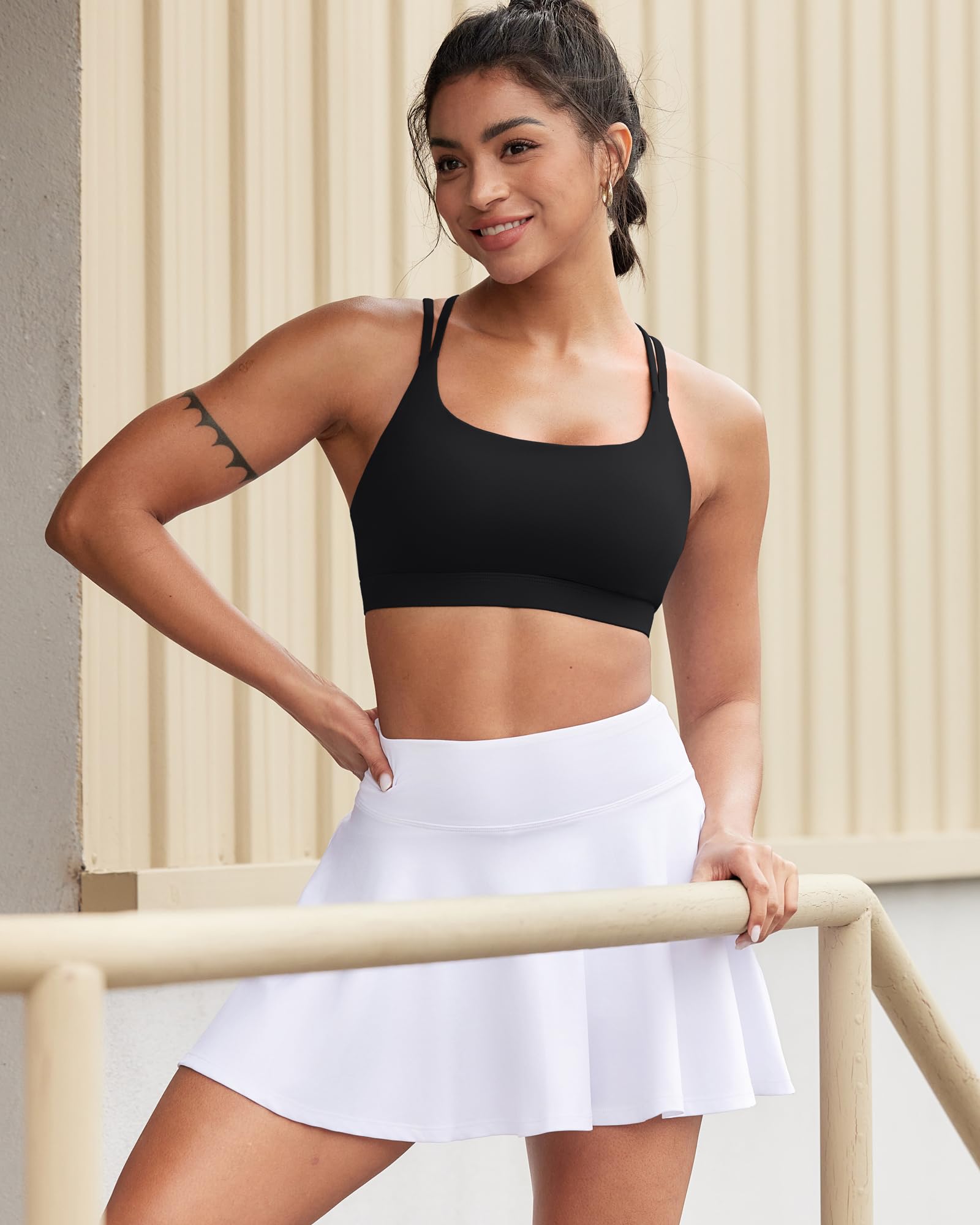 ✅ 【SWEAT OUT IN STYLE! 】: Made from a flexible four-way stretch fabric that supports your body as you move. Enjoy the freedom of movement as the open back styles aim to keep you comfy and cool while you bring on the heat! Running sports bras for women with wide waist band for that support we all need!