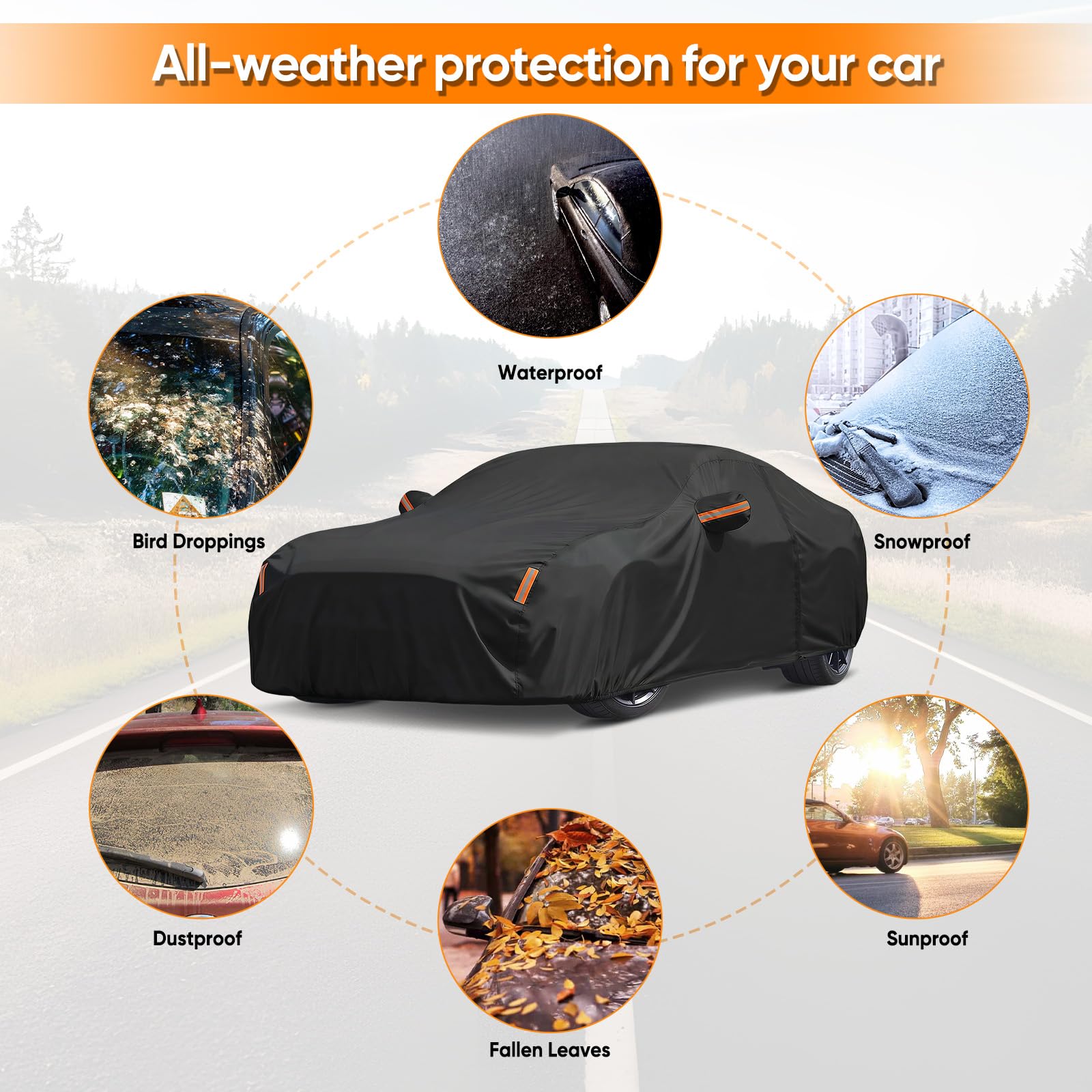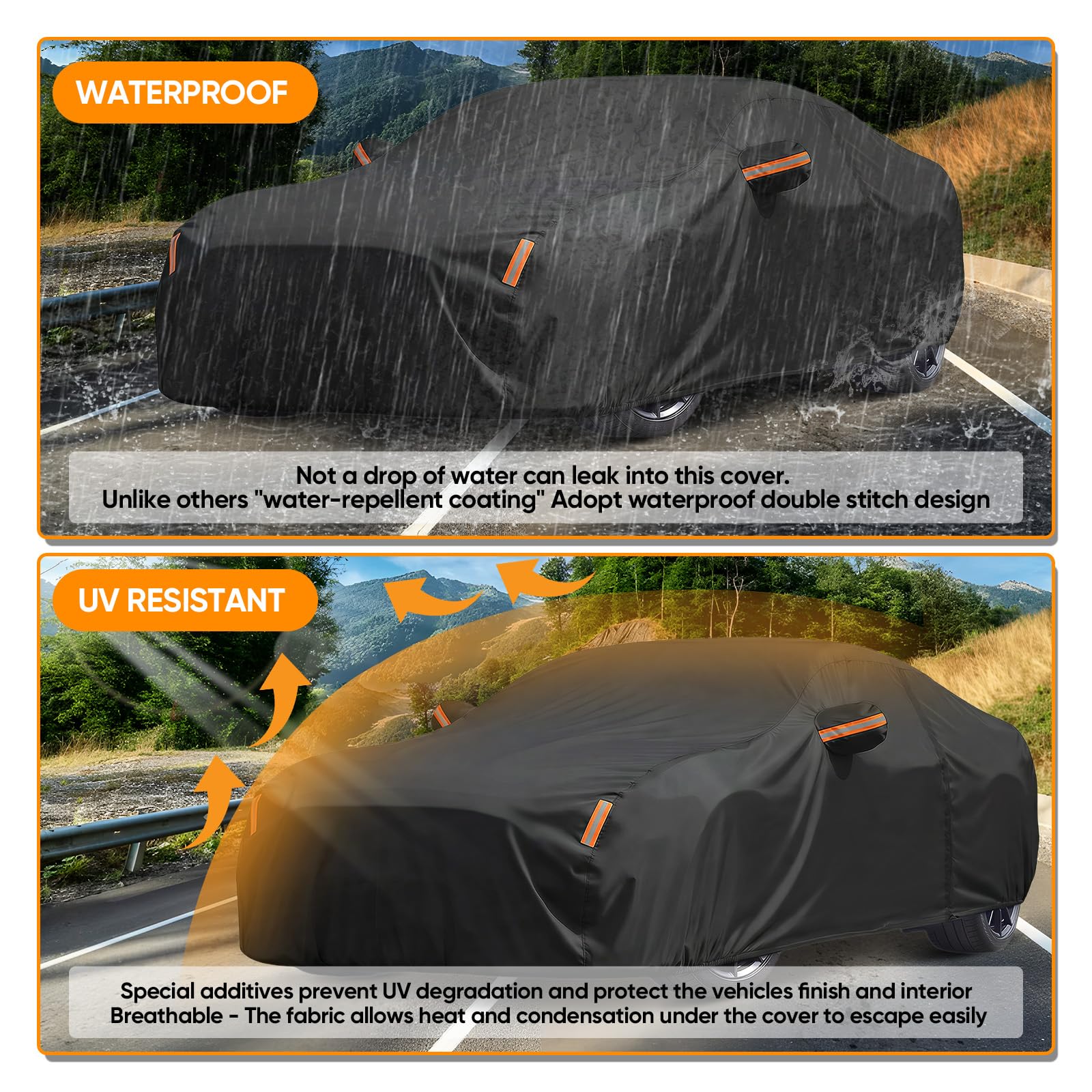 Perfect Fit - This car cover waterproof all weather is custom fit for Ford Mustang 1994-2026. Designed after accurate measurement of the car body dimensions that can fit snuggly on car for protection.