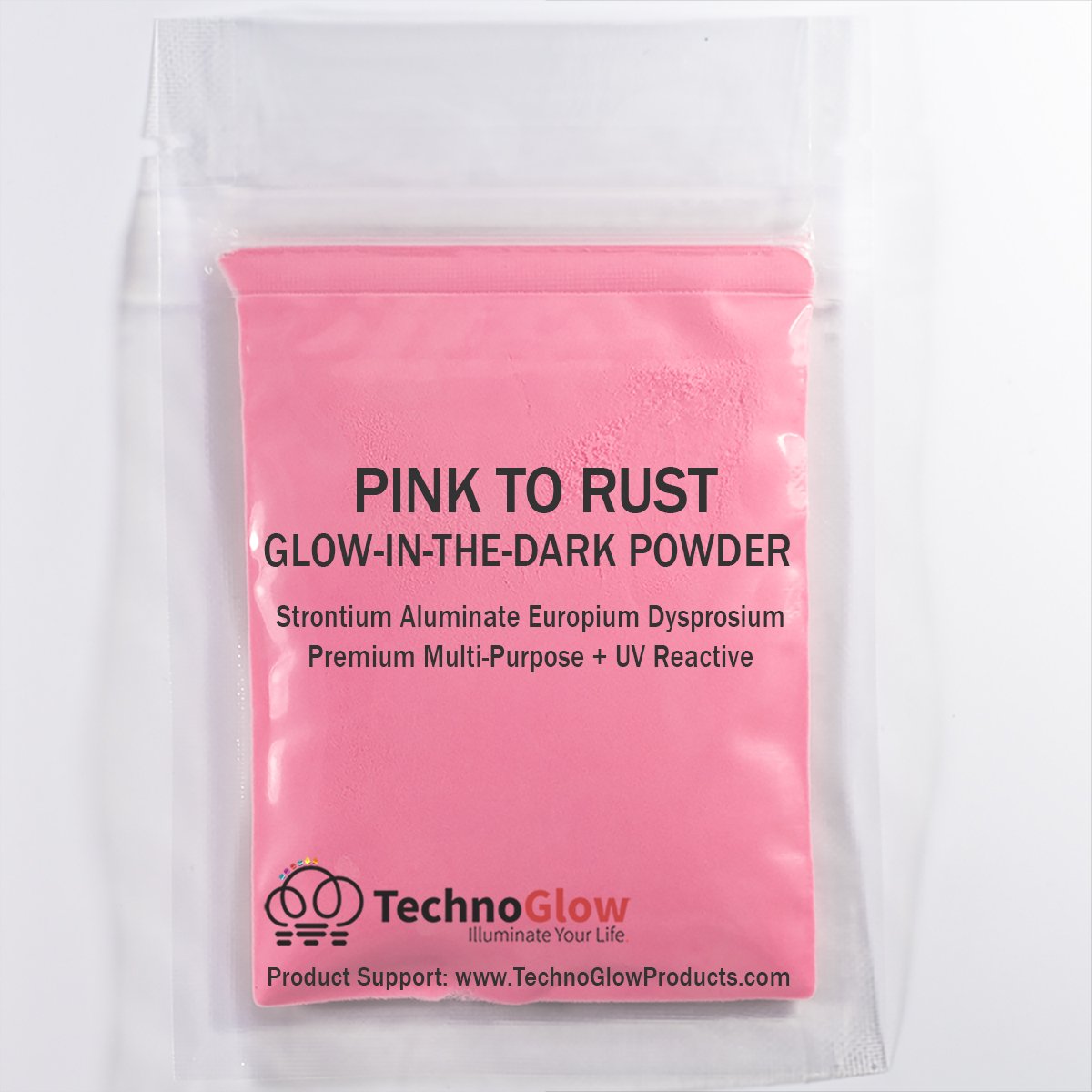 Glow In The Dark Powder Pigment | The PRO-Series by Techno Glow NaturalColors Also called invisible or neutral is 100% pure made from rare earth minerals and can handle temperatures of about 1100°F or 600°C. Green is the number 1 choice, followed by Aqua and Blue. These charge the fastest, glows the longest and brightest. The natural green is so powerful that the human eye can still see it glow in a pitch-dark room after 24 hours. Aqua and Blue glows for up to 12 hours. Very good colors for using outdoors. Purple is one of our most popular colors and glows for up to 6 hours. It is a lot harder to charge, but direct sunlight or uv light will get the job done faster. Natural Orange and red all glows for under 1 hour and are much more expensive. Fluorescent Colors Tinted (dyed) for a vibrant color in normal daylight. Free of formaldehyde, making it the safest daytime phosphorescent pigment on the market. Most of these glow between 4-8 hours. Some fading might occur outdoors. Other Red zinc is a deep red, charges very fast and glows under 1 hour. Very strong sulfur odor. Mixing Ratios We recommend mix ratios between 15% to 33% glow powder. In general, ratios with more than 33% powder to the mix don’t achieve a more drastically bright glow to justify the cost of more glow powder. Testing various ratios are recommended for commercial and manufacturing purposes. 20% = 1:5 = 1 ounce powder to 5 fluid ounces clear medium 25% = 1:4 = 1 ounce powder to 4 fluid ounces clear medium 33% = 1:3 = 30 grams powder to 90 milliliters clear medium More detailed information provided in the bullets above. Scroll up and grab some glow in the dark powder today!