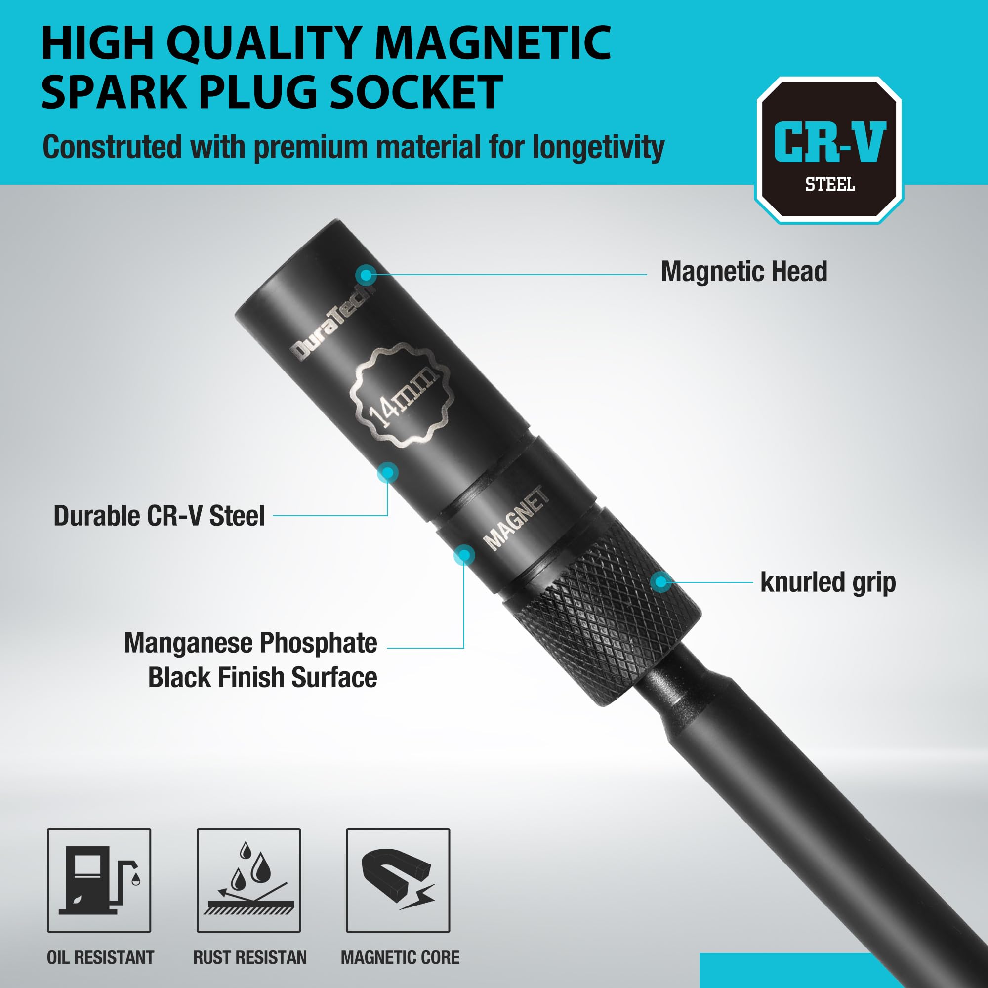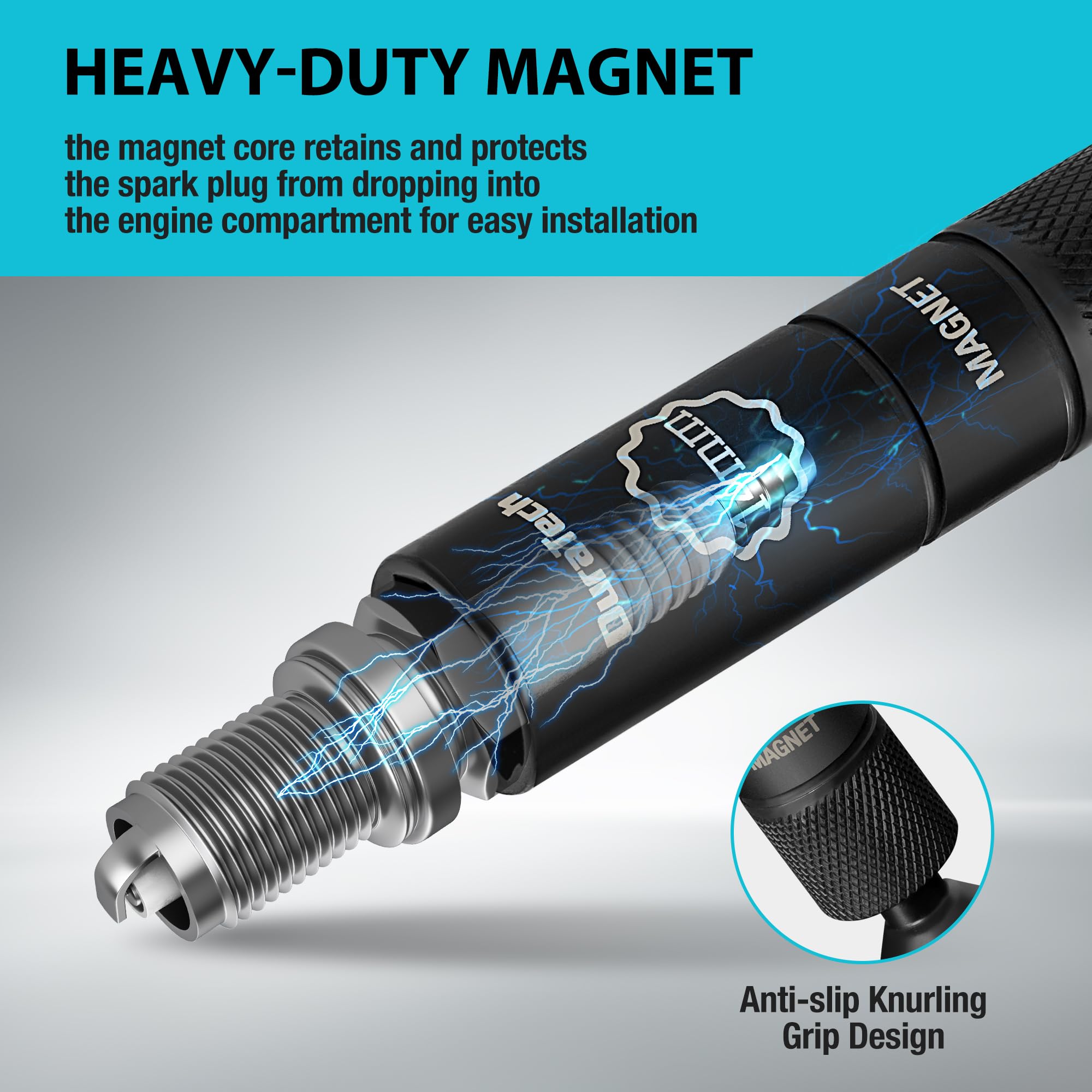 HEAVY-DUTY MAGNETIC CORE DESIGN: Spark plug tool is equipped with a strong magnetic core that securely holds the spark plug in place, preventing it from falling or getting damaged during use. The magnetic core design ensures the spark plug stays stable during installation and removal, preventing it from dropping into the engine bay and eliminating unnecessary hassle and work interruptions
