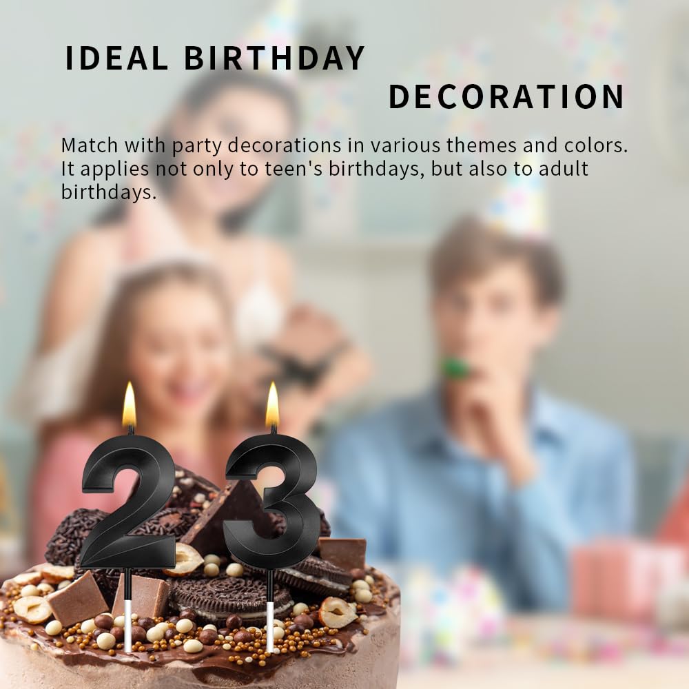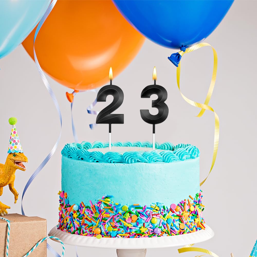3d Visual Sense Birthday Candles: Package contains 2 Pcs black birthday candles 23 including number 2 birthday candle and number 5 birthday candle. The 23 candles for cake is eye-catching and sparkling in the dark light, you can also use 23rd birthday candles to be beautiful cake decorations to embellish your cakes and cupcakes make your birthday cakes stand out, also you match these candles as 52th birthday cadles for women men. Every birthday need be document it whether young or old.