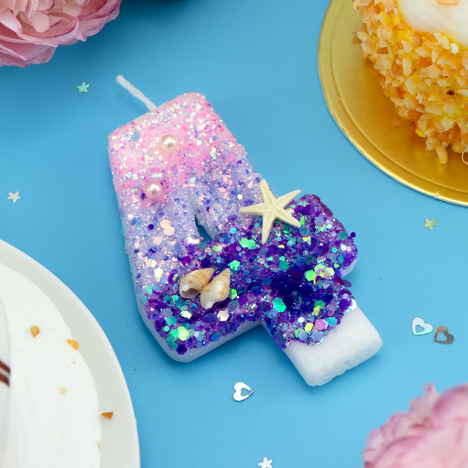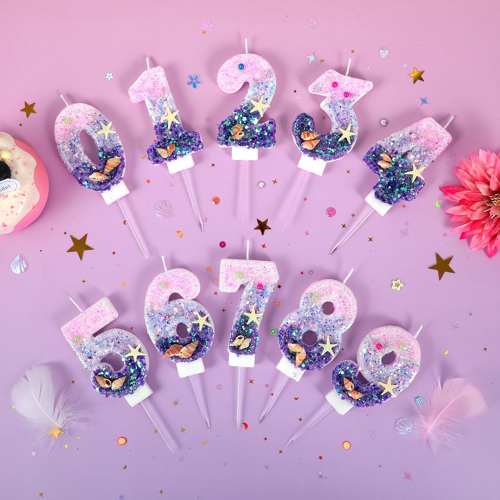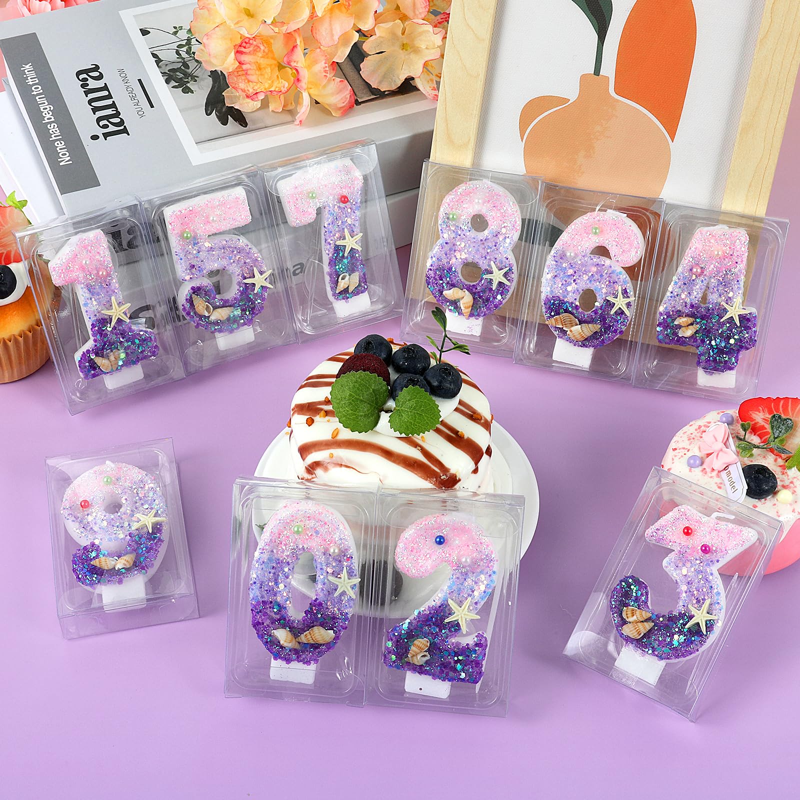 Exquisite design:Beautifully designed pink and purple number candles inlaid with conchs, starfish, and pearls, perfect for adding a touch of elegance to any birthday cake or celebration