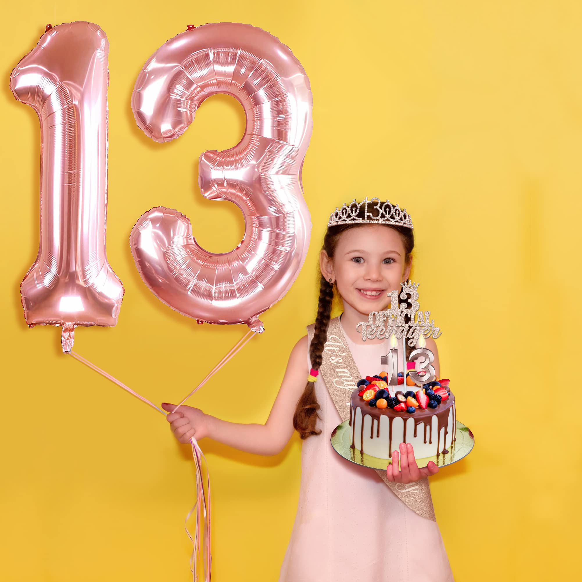 13 Rose Gold Balloon Numbers: Big size 32 inch, are made of sturdy mylar foil material to stand the long-hour display. Come with straw to inflate. These balloons has Self-sealing valve for easy inflation and deflation. Inflate 13 balloons slowly with air or helium, just fill 90% of the rose gold 13 number balloons space that could allow the 13th balloons rose gold to expand completely. Hang these in your party perfect backdrop for 13 year loved decorations