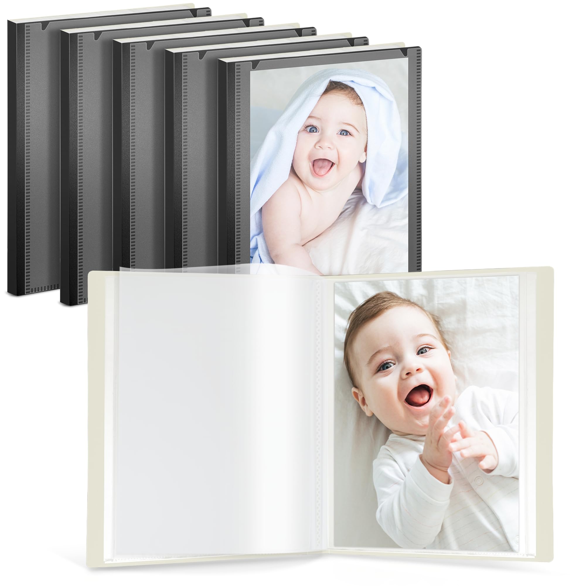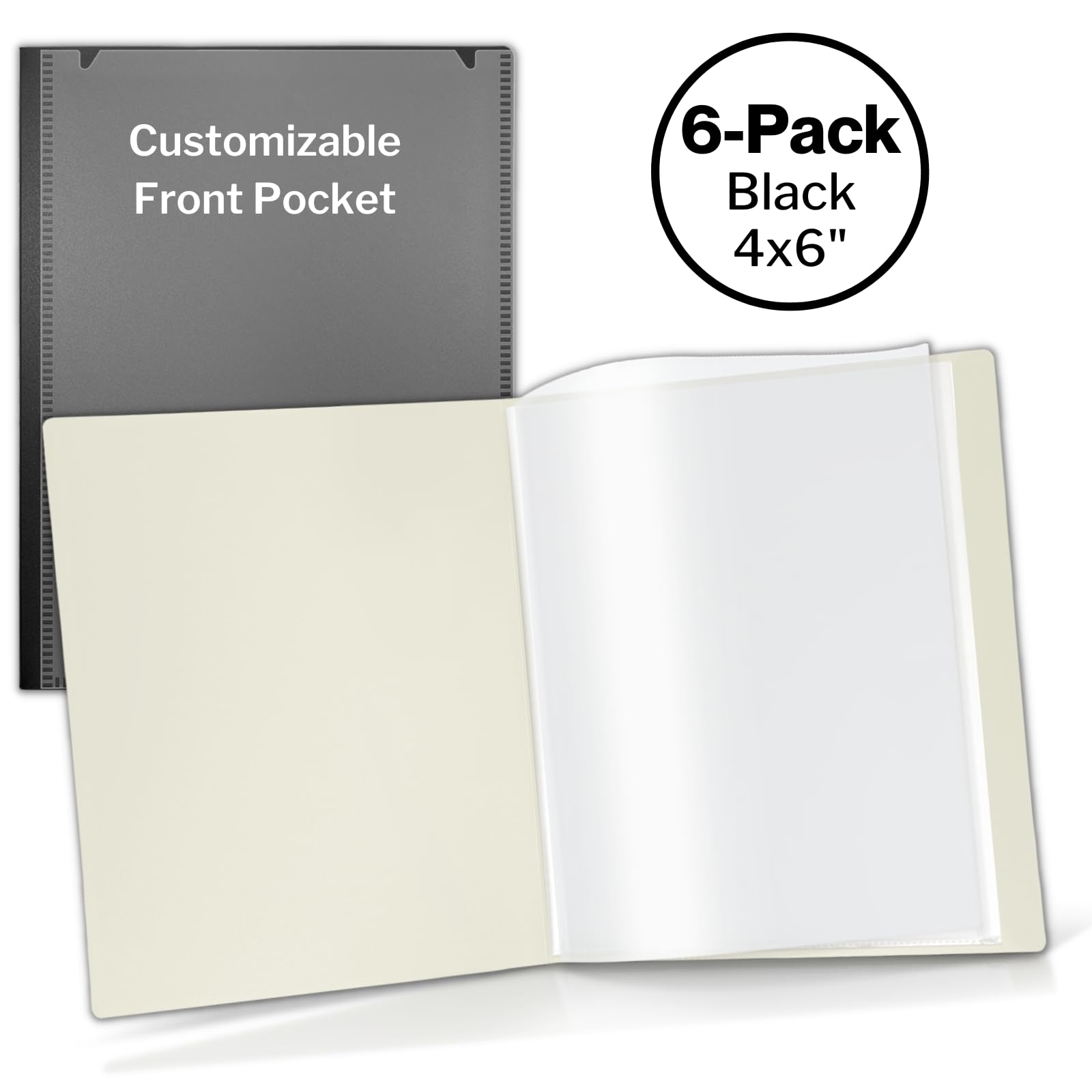 Customizable cover: Insert a photo in the front pocket to create your own theme binder. Set of two 4 by 6 photo albums constructed of sturdy poly plastic. Attractive black cover with ivory interior.