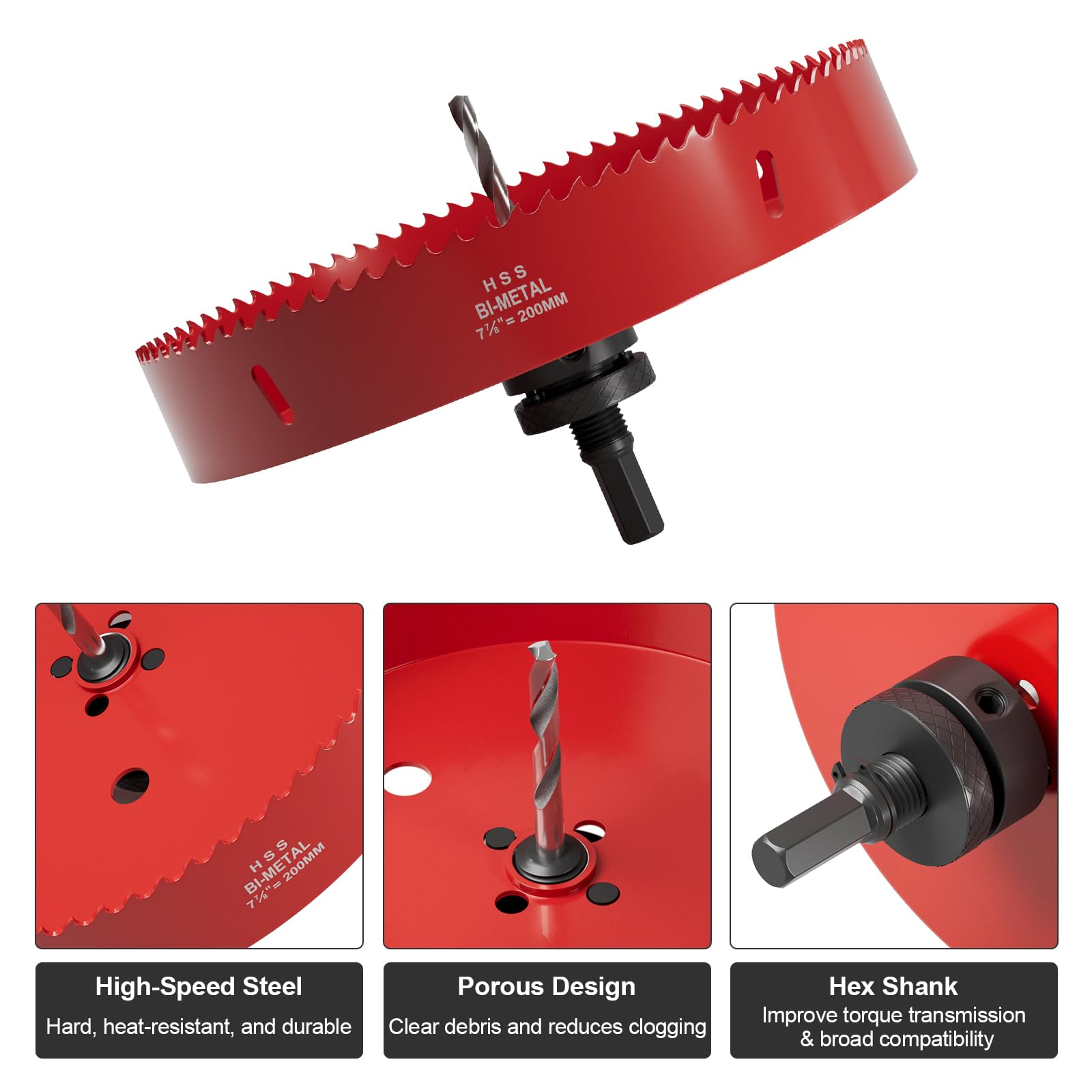 Sharp Cutting Edges: The hole saw features sharp and sturdy cutting edges, with the center drill made of M42 steel providing higher hardness and heat resistance; This ensures a sharp cutting edge, improving work efficiency and precision