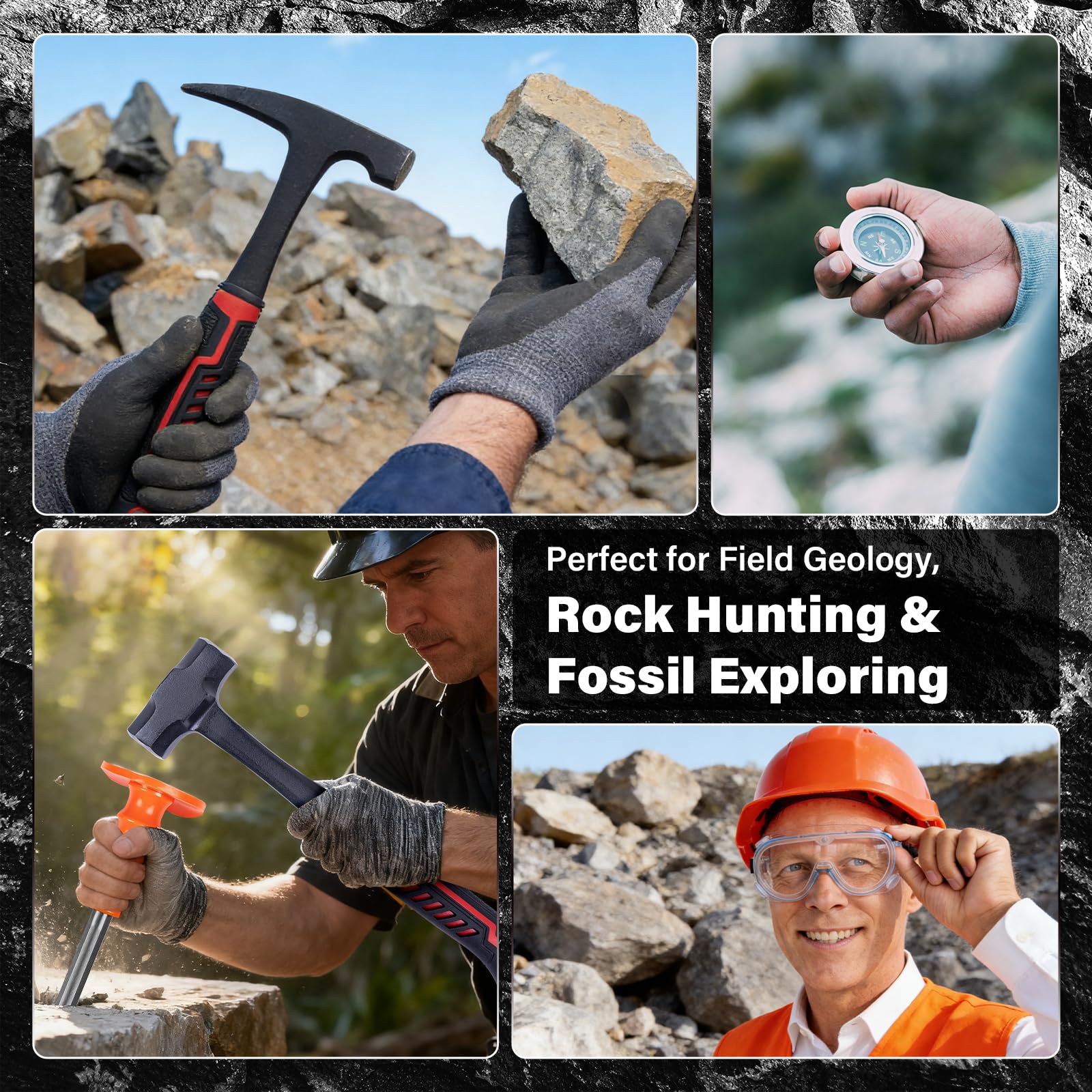 Durable & Reliable Tools – The rock pick hammer and octagonal hammer are built for breaking, chipping, and splitting rocks, suitable for geology study, fossil hunting, and fieldwork practice.