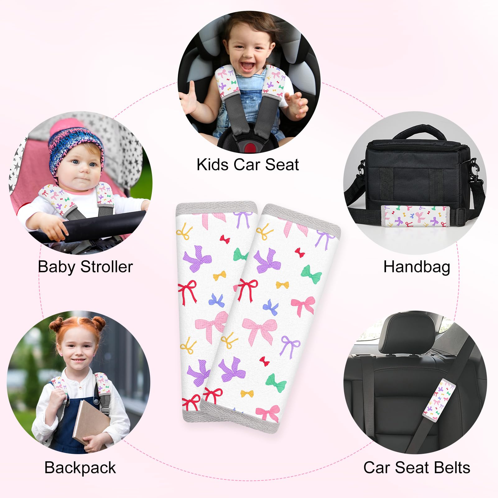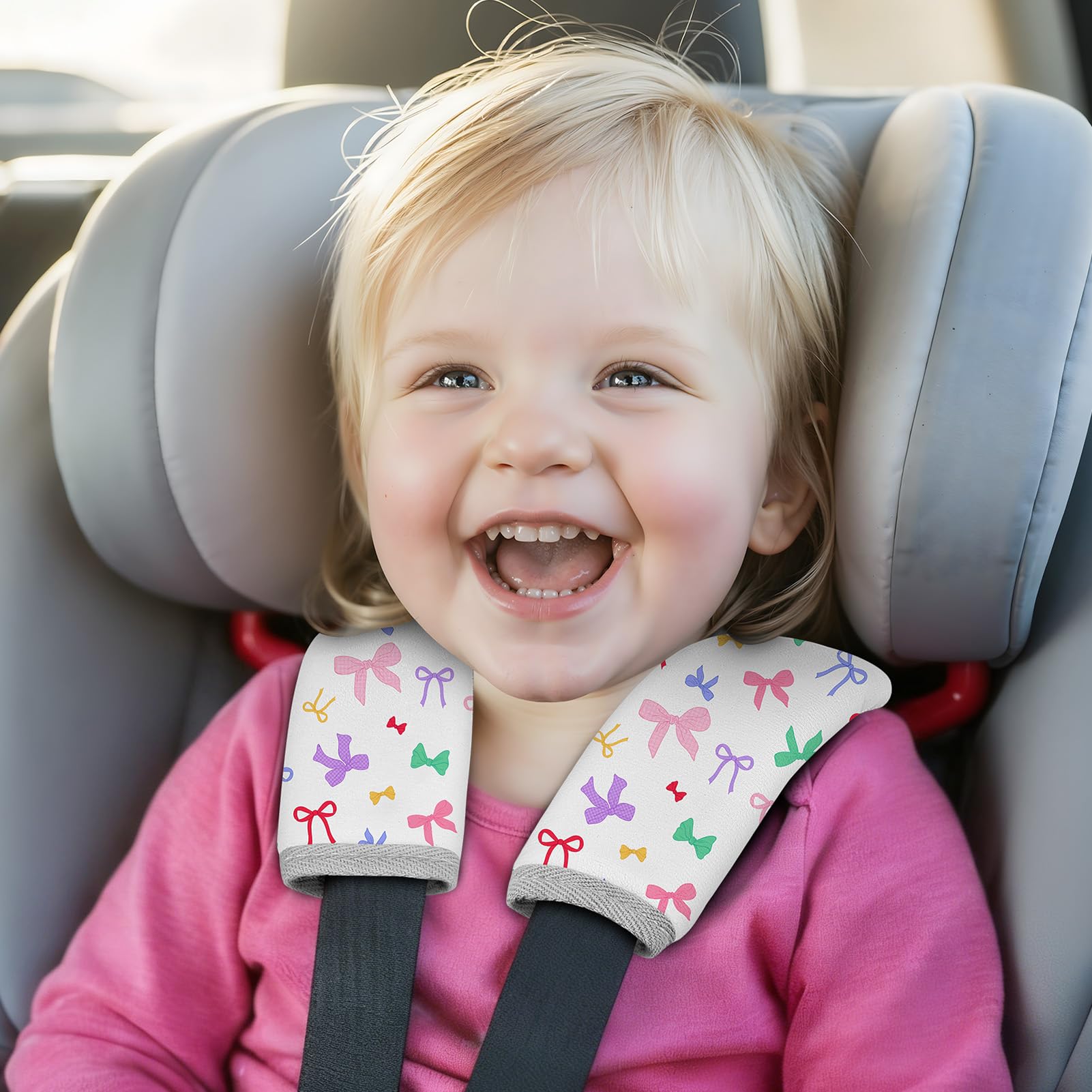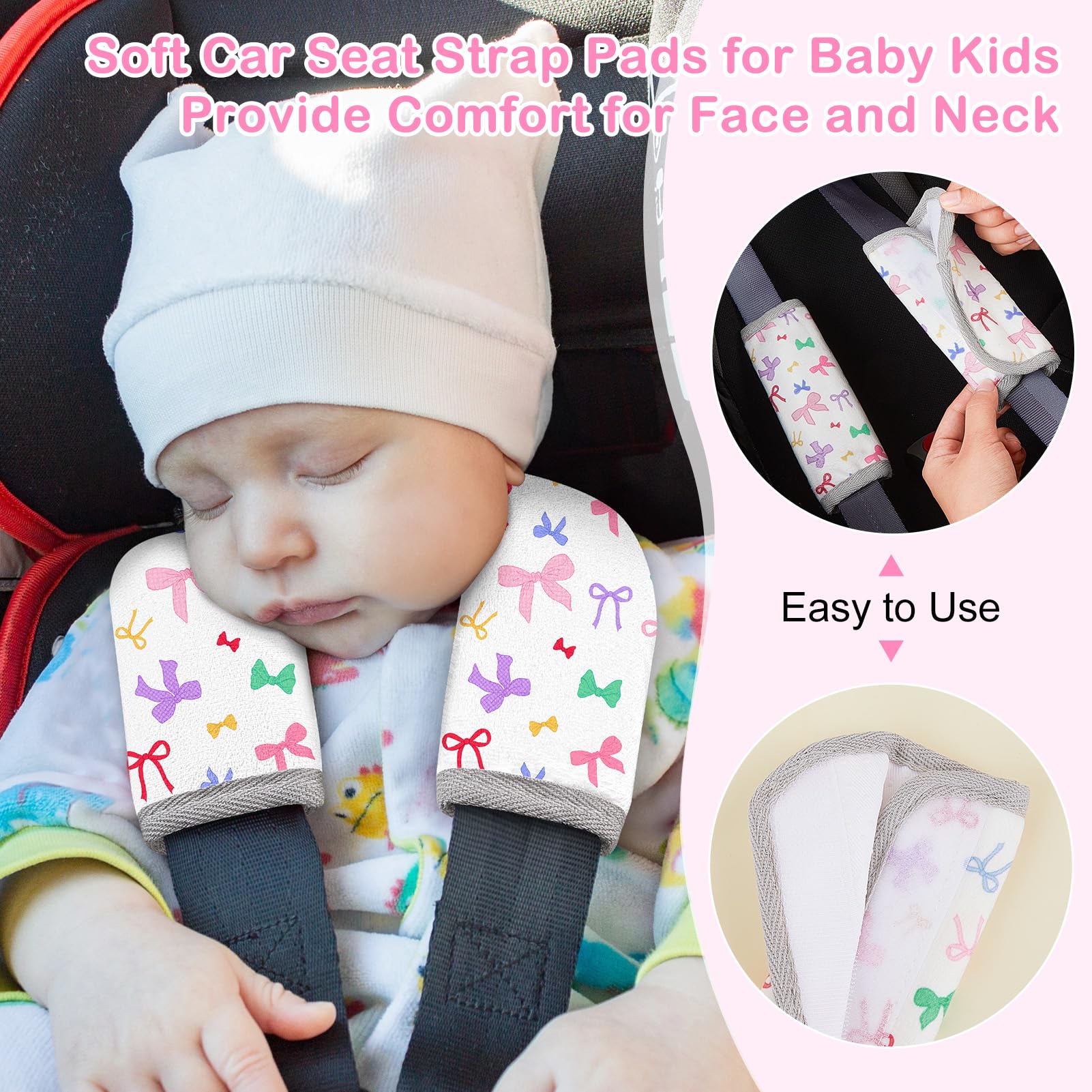 Soft & Comfortable Material: Our seat belt cover cushion for baby is made of soft and breathable fabric, it can protect baby's skin from being scratched by the seat belt; This seat belt cover with cute pattern and bright colors will make your kids happy