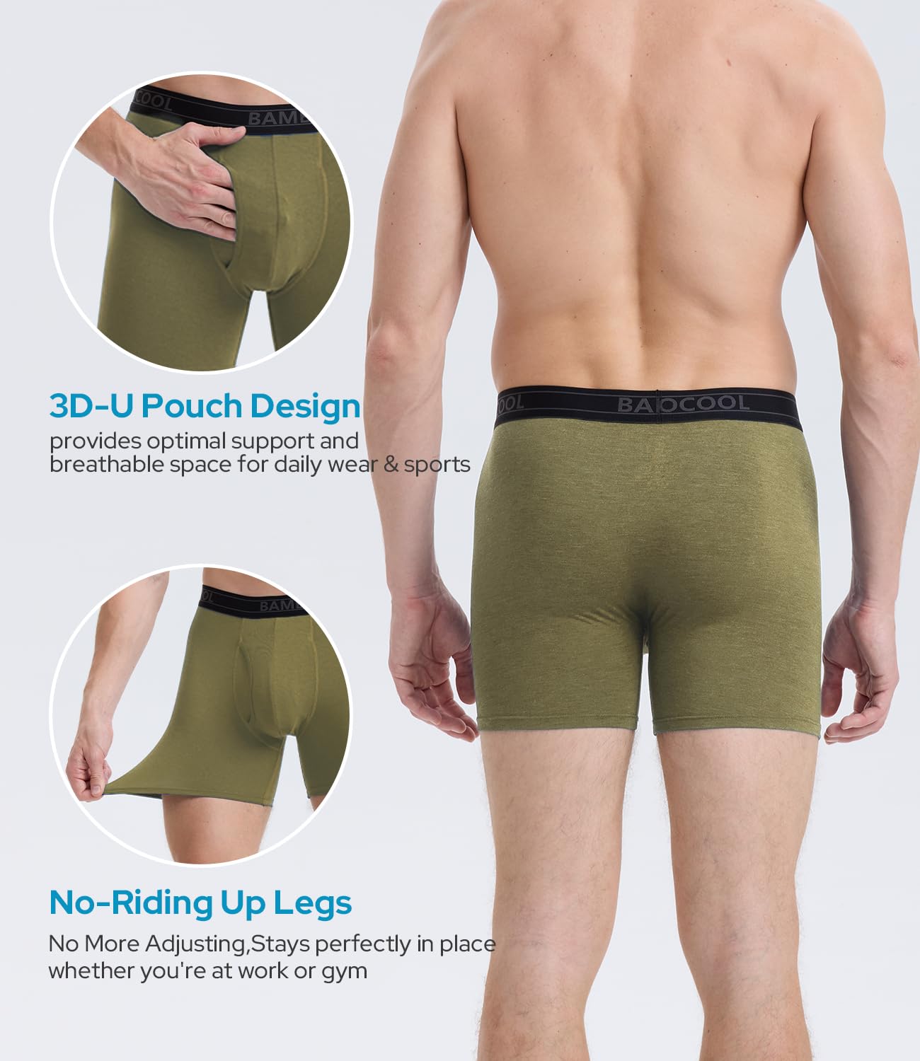 SIMPLY DESIGN:Featuring a thoughtful 3D pouch design,these boxer briefs offer superior room and comfort, allowing you to move freely without any restrictions or discomfort.
