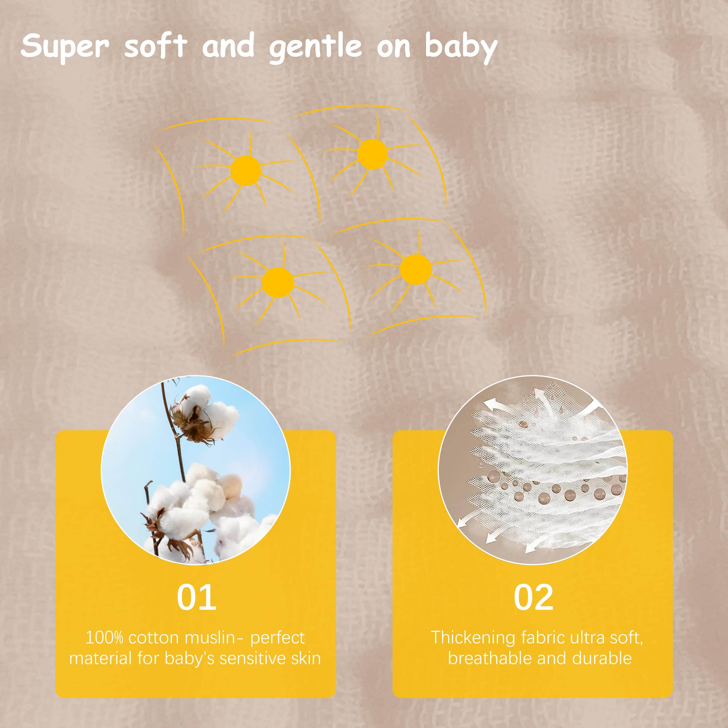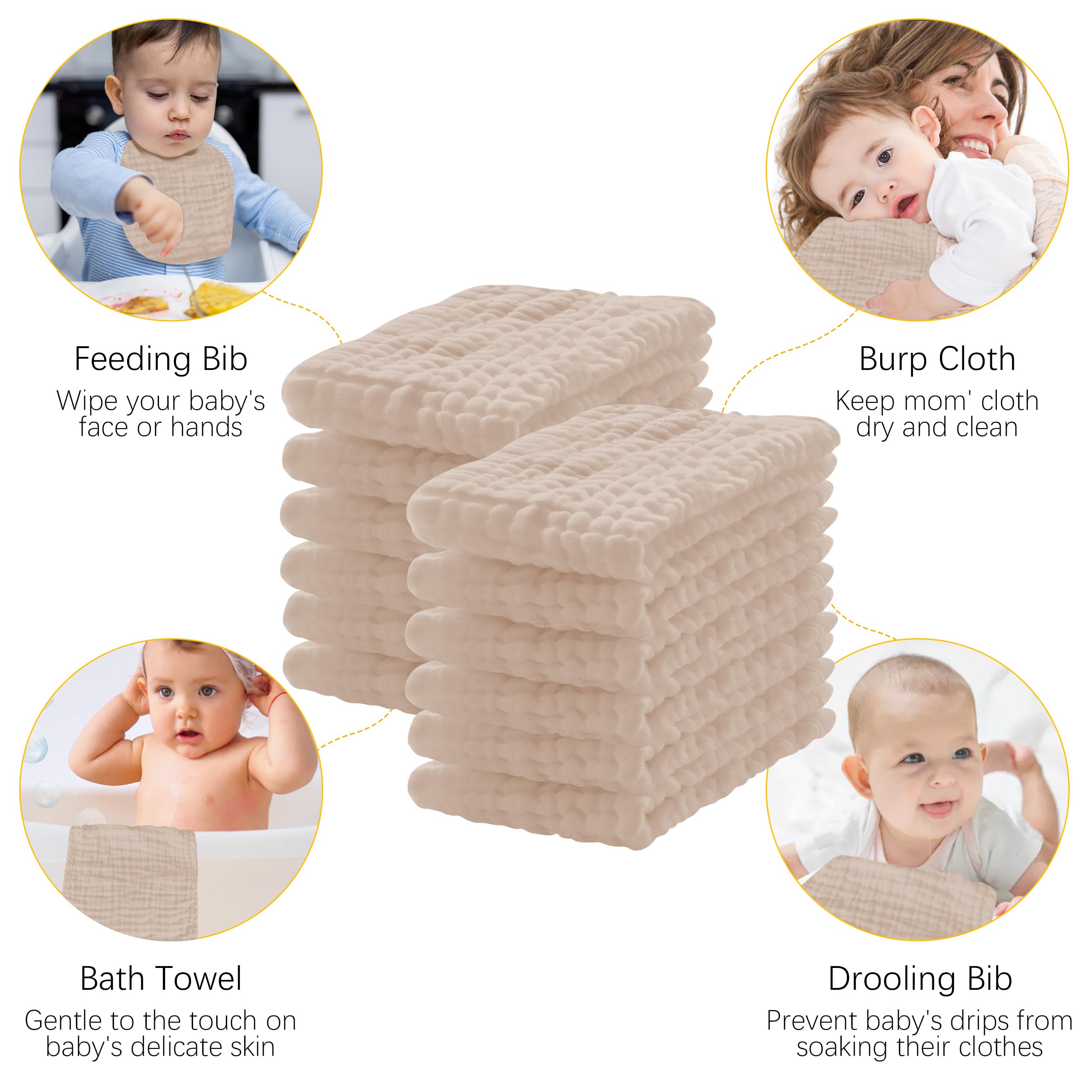 💎ULTRA ABSORBENT- These washcloths are perfect for catching spills and drools, thanks to the ultra-absorbent 100% cotton muslin fabric. It feels just like touching a soft cake, truly a baby essential item.