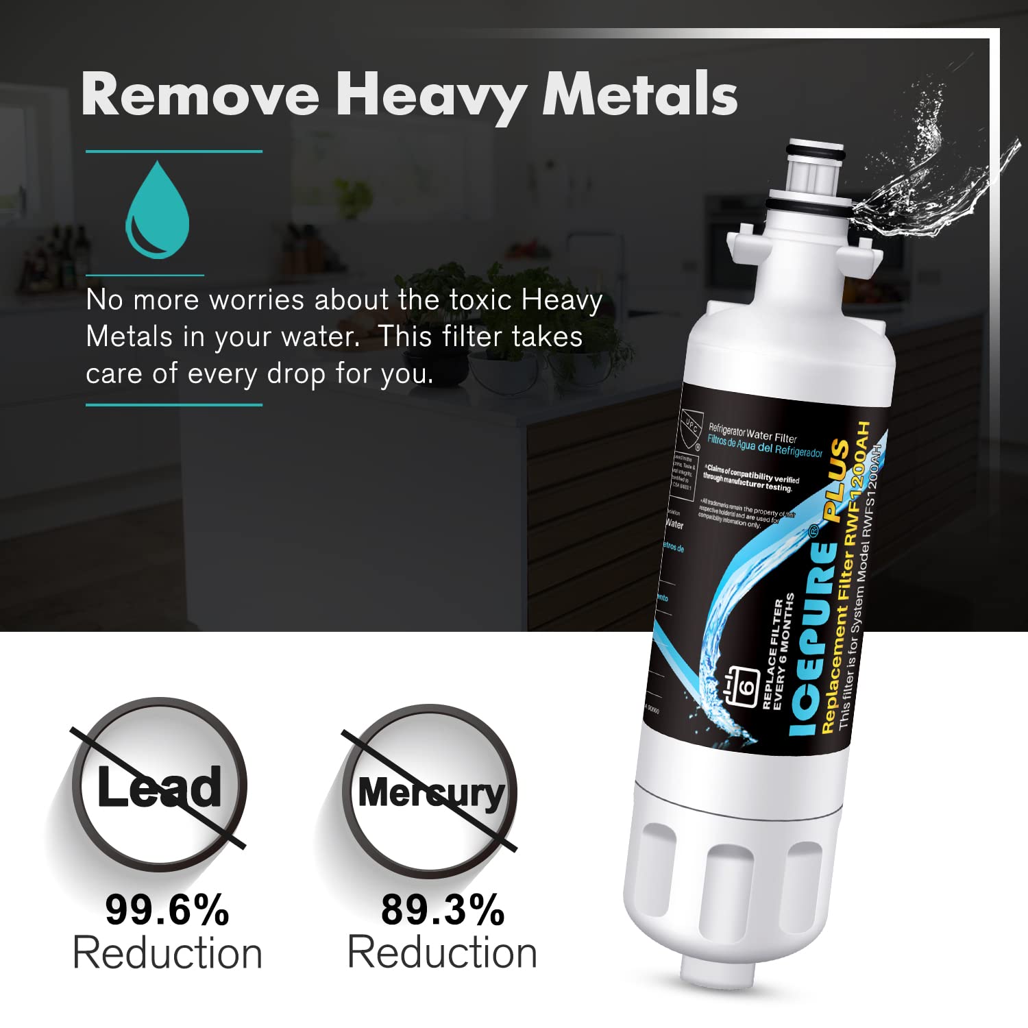 NSF 53 Certified – Proven Protection Against Harmful Contaminants.The ICEPURE PLUS water filter is tested and certified by IAPMO against NSF/ANSI 53 certified to reduce 98.88% Lead, 99.99% Cyst, mercury, asbestos, benzene and other health-related contaminants often found in tap water. Designed to help protect your family from long-term exposure to harmful substances.