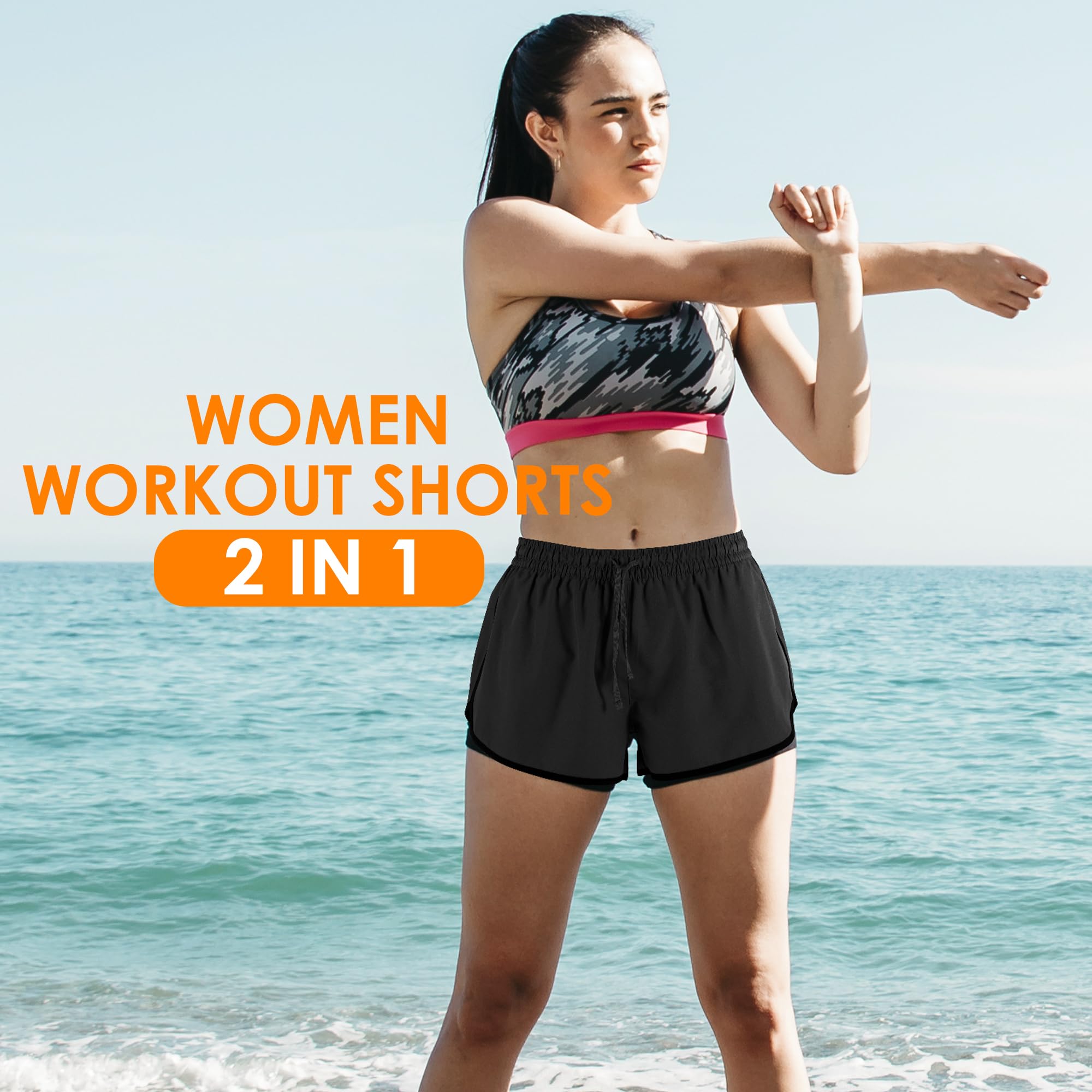 Lightweight and Comfortable Fabric:Women's running shorts with soft material wicks away sweat to keep you comfortable when you exercise.An elastic waistband and a functional drawstring closure, perfect for running, workout, exercise, gym, fitness, jogging, daily wear.