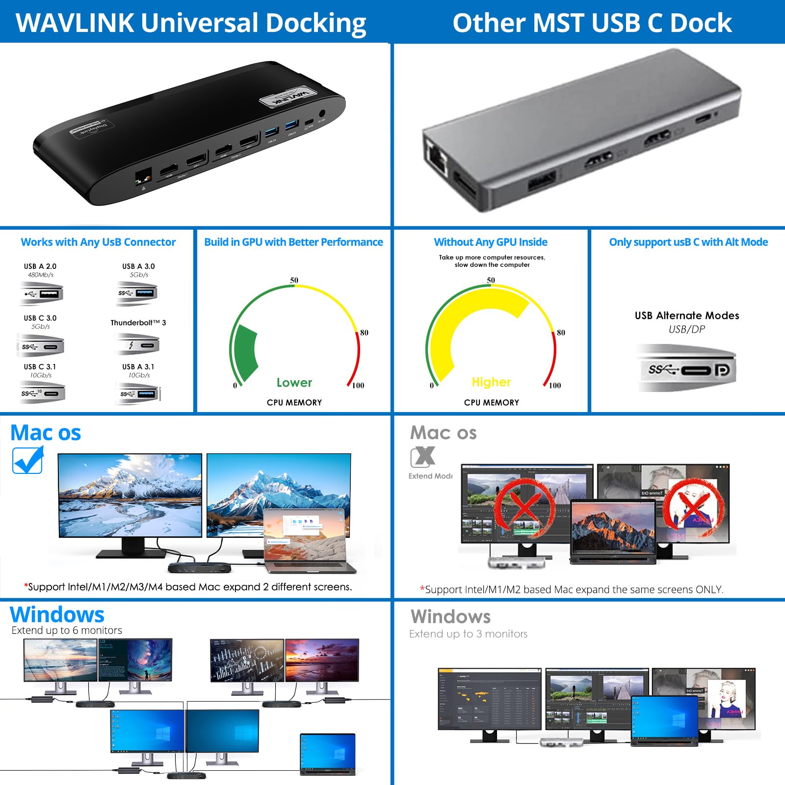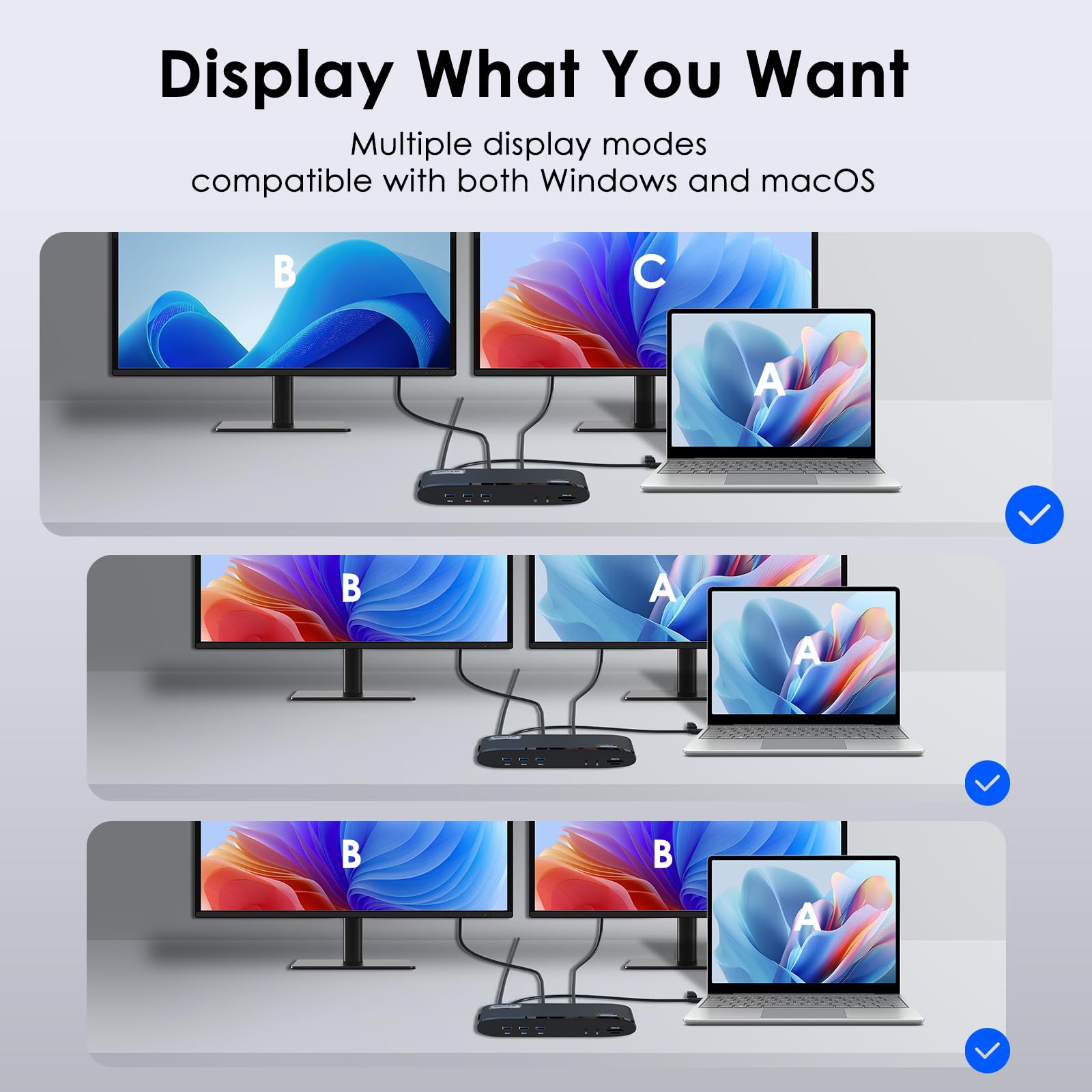 Broad Compatibility: Works with Windows 10/11, Mac OS 11.x-15. x and later, Chrome OS, Ubuntu, Android, and HarmonyOS. Laptop Docking Station compatible with popular laptops like M1/M2/M3/M4 MacBooks, ASUS, etc. *Not compatible with Linux, Unix, iOS, iPadOS. Requires DisplayLink driver installation; not plug-and-play.