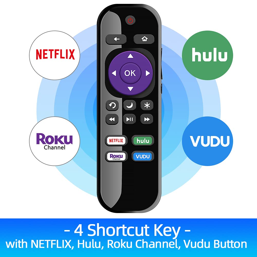 ▶New replacement for Onn Roku Smart LED TV remote control, Compatible with Onn Roku 720p 1080p 2160p 24 32 40 43 50 55 58 65 70 inch Built-in HD FHD 4K UHD Smart LED TV with Netflix, Hulu, Ro-ku-Channel and Vudu Button.