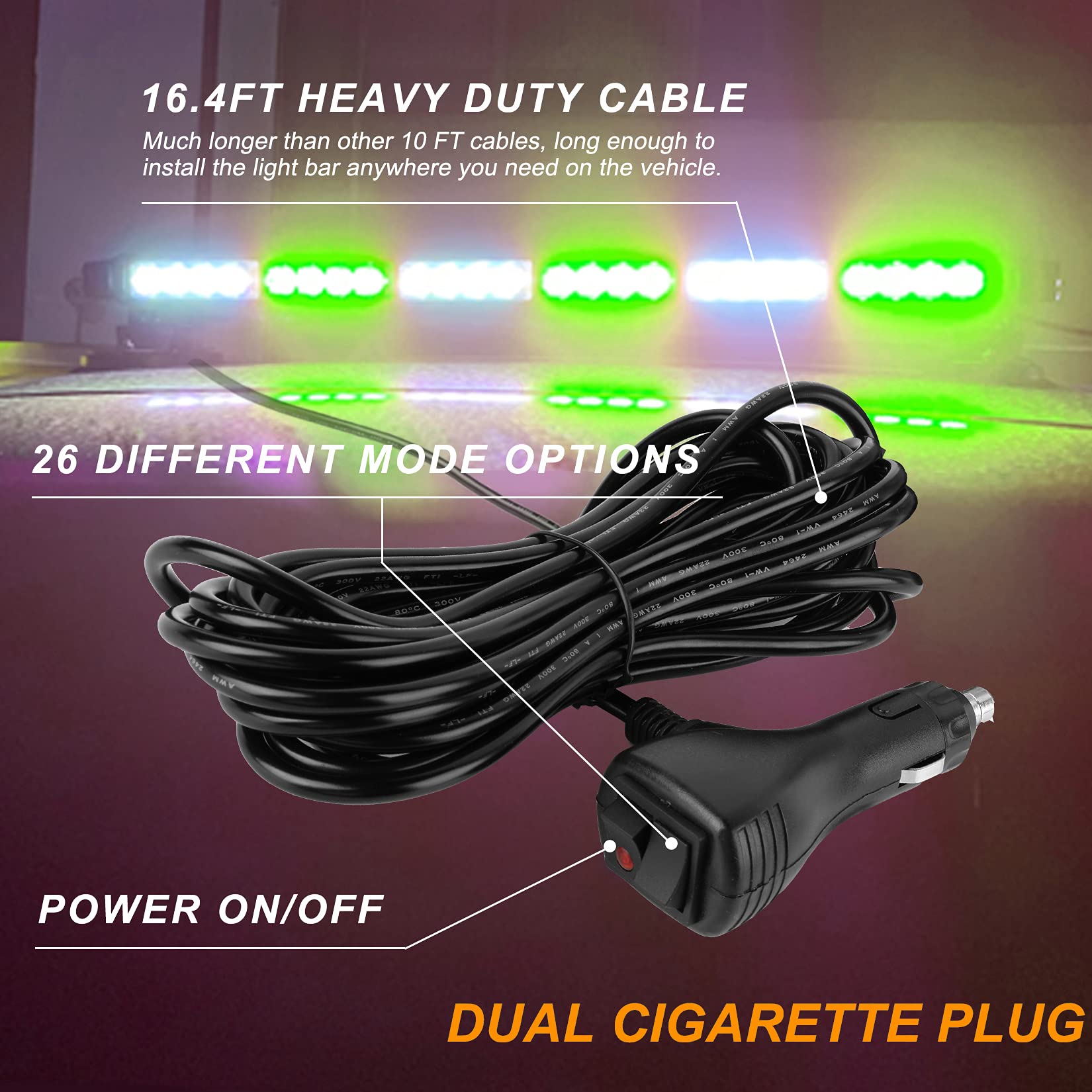 【26 FLASHING MODES】Double switch buttons setting, 26 Patterns to choose from. You can switch ON/OFF or select the flashing mode conveniently at the cigarette lighter plug buttons. Last used pattern recall/memory function.