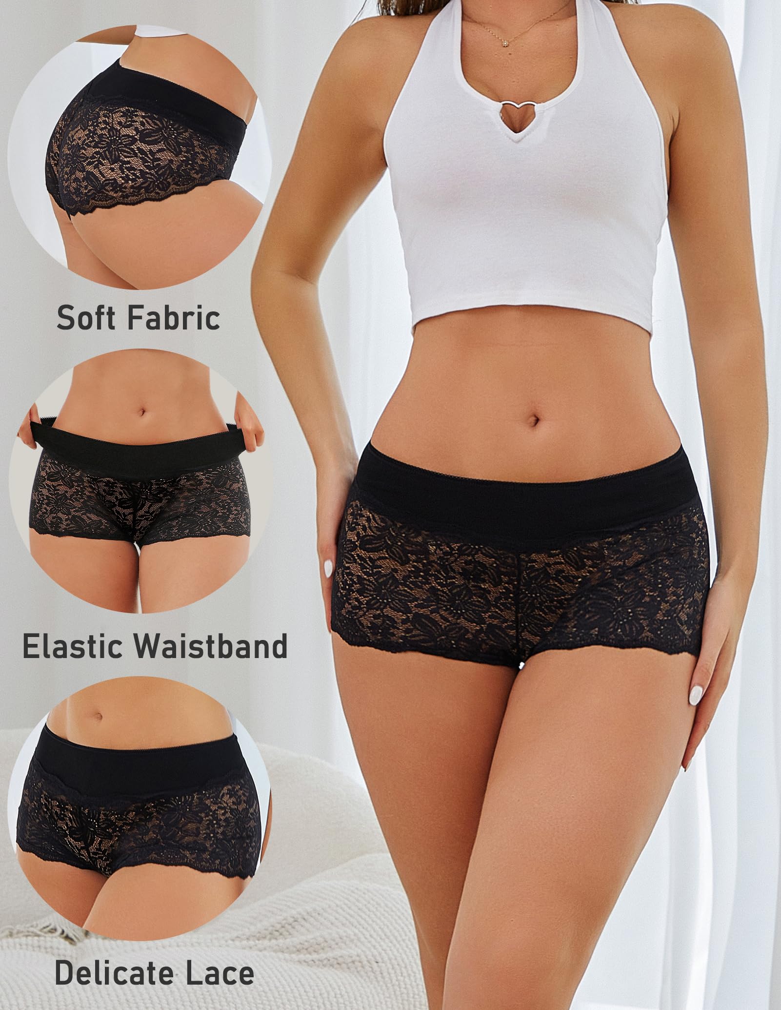 Lace Boyshort Underwear for Women๏ผOur stretch cotton waistband lace boyshort panties feature a distinctive cotton waistband design that offers exceptional elasticity. The elastic waistline provides sturdy support for a variety of waist sizes, ensuring that they stay in place without easily slipping down, making them perfect for everyday life as well as during physical activities. These sexy lingerie offer a stretchy, lightweight and comfortable fit for all-day wear.