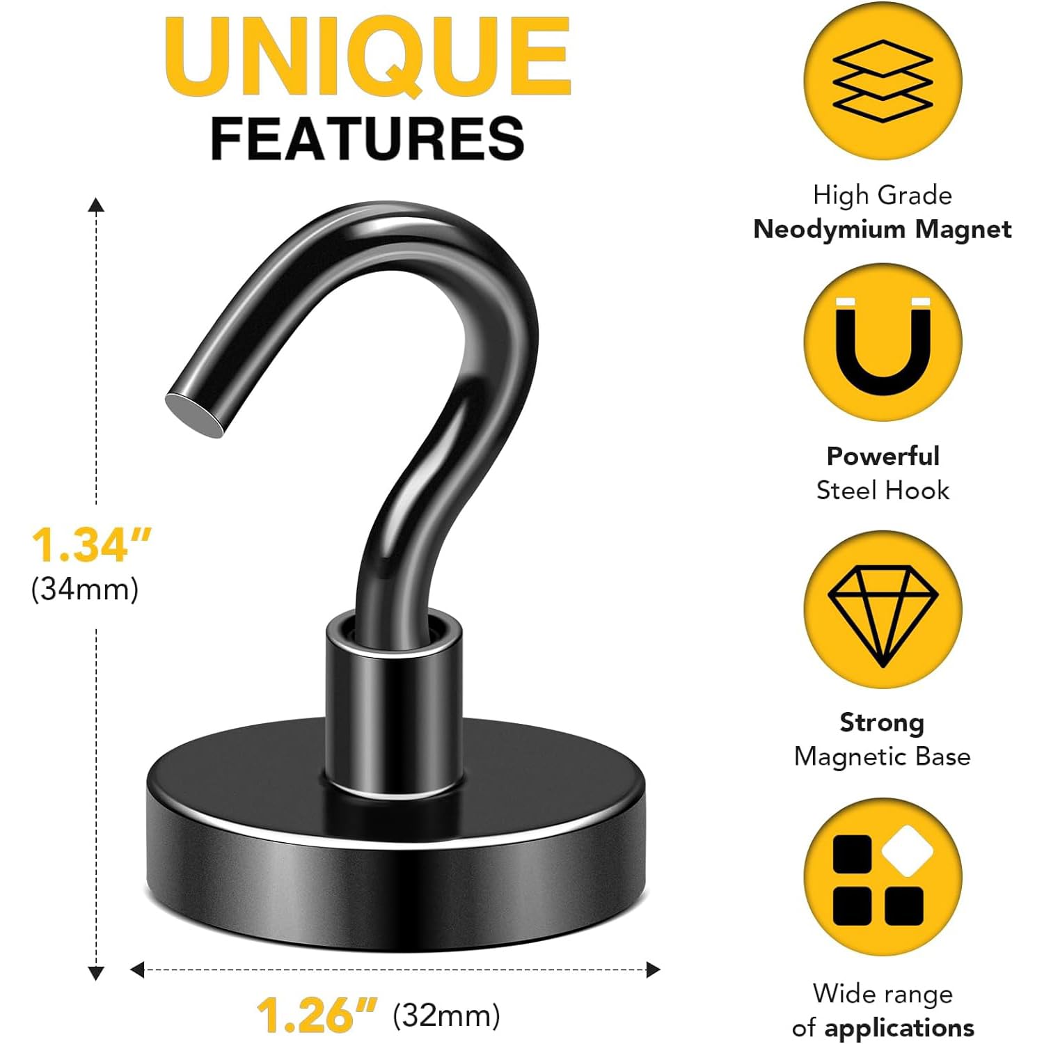 【Versatile Use】These magnetic rare earth neodymium hooks are perfect for hanging grill tools, decorative lights and tool accessories, also be widely used in cruise, fridge, kitchen, locker, workplace office, garage, indoor, outdoor and anywhere there is iron or steel. No drilling holes, No sticky residue, No bolt or screws; Easy to install or remove and reusable.