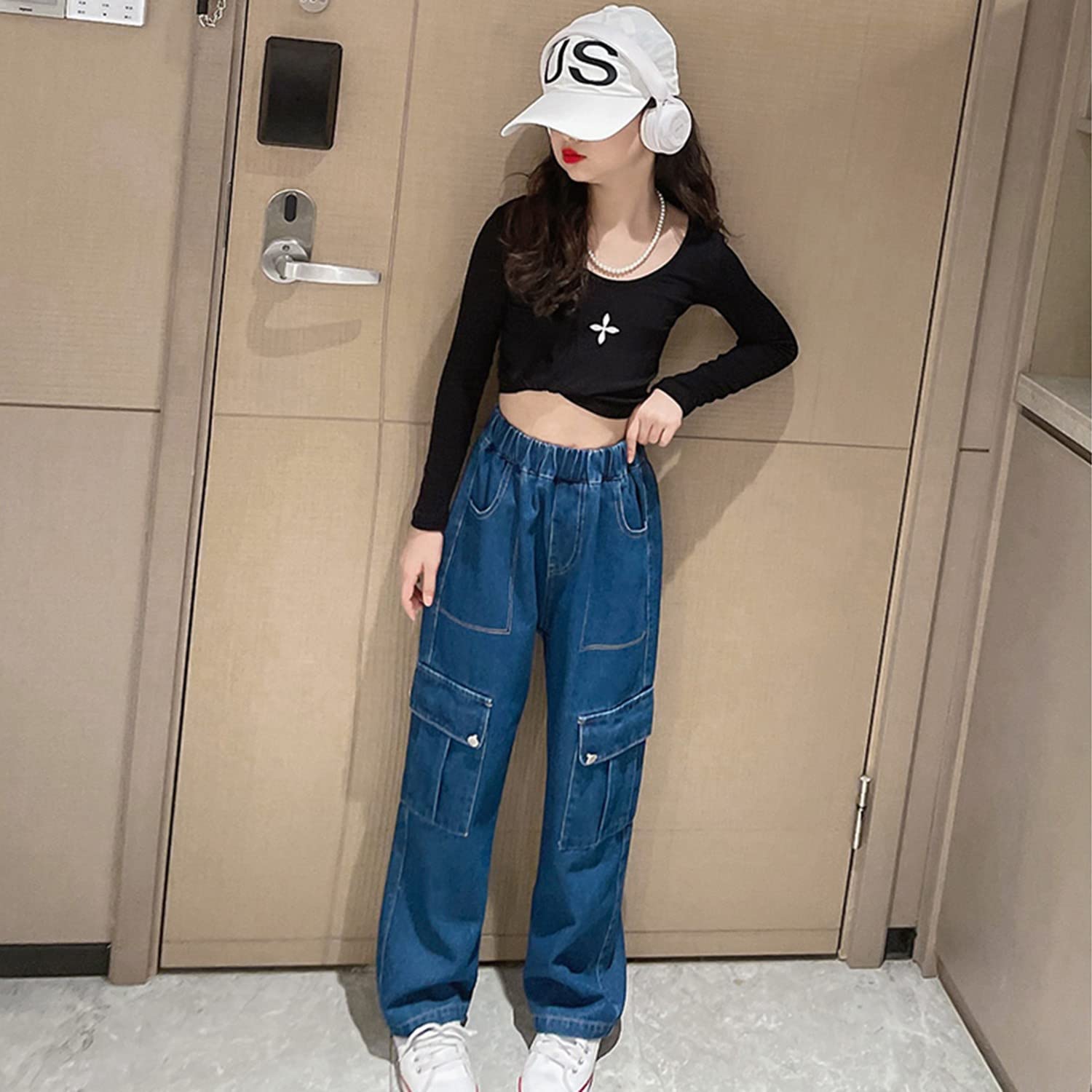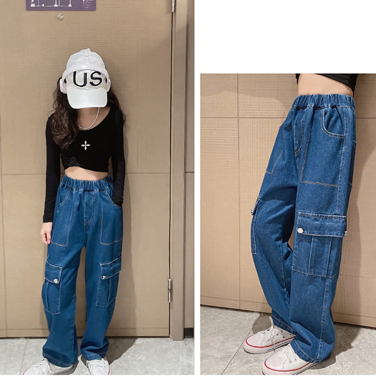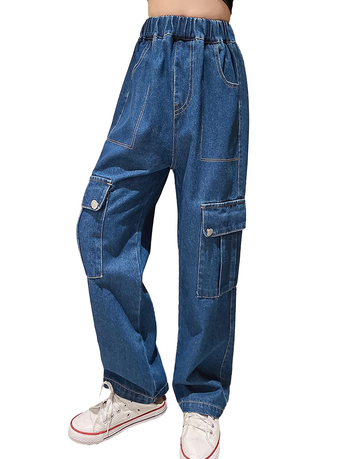 Features: Wide leg Jeans, girls cargo jean pants with flap cargo pockets and back pockets offer functional flair. Elastic waistband expands for a perfect fit and easy to wear, NO pilling trousers.