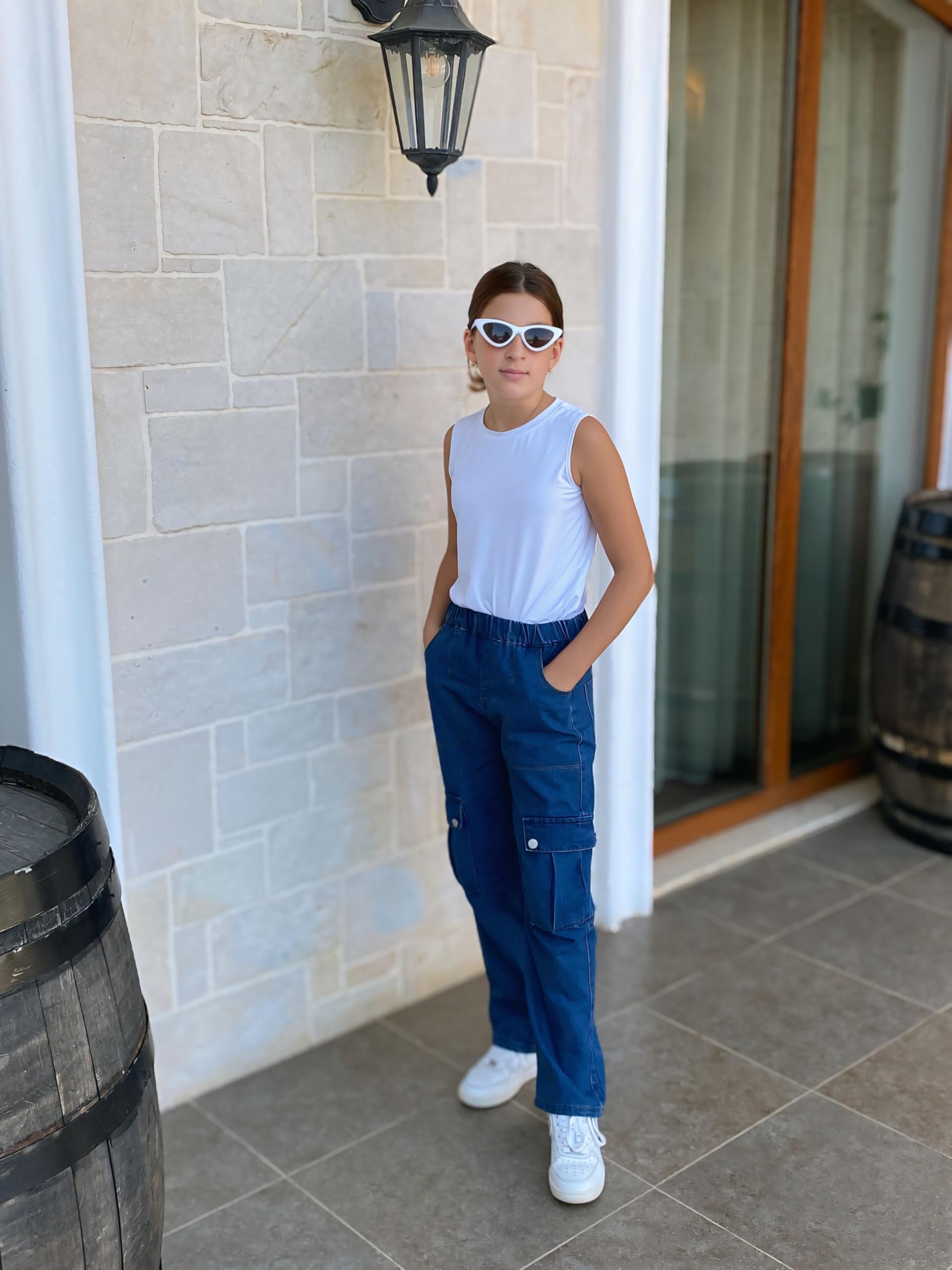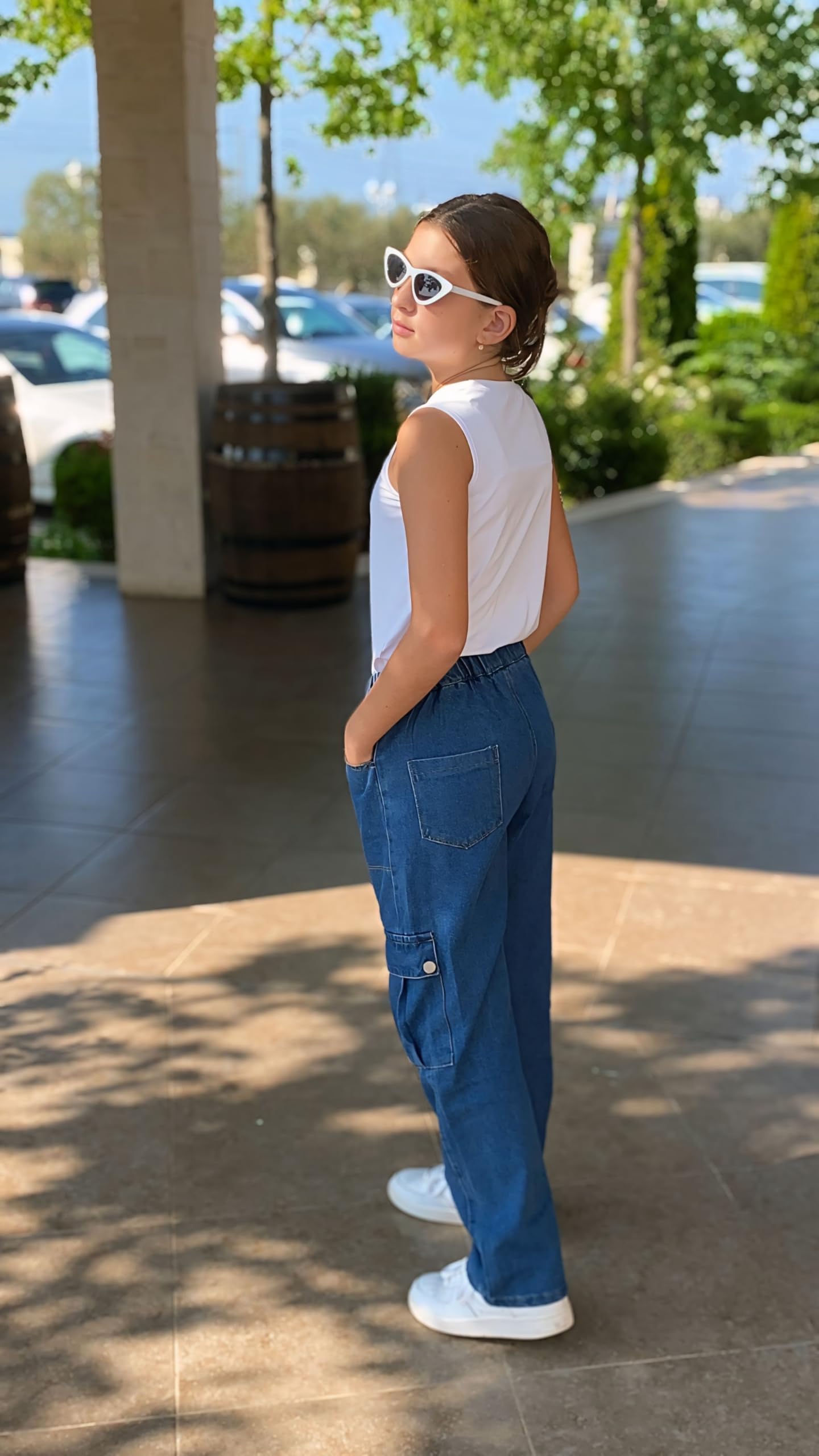 Matching: Girls denim cargo pants elastic jeans are perfect to pair with any shirts or t-shirt (short or long sleeve), It will become a quick fave in her wardrobe.
