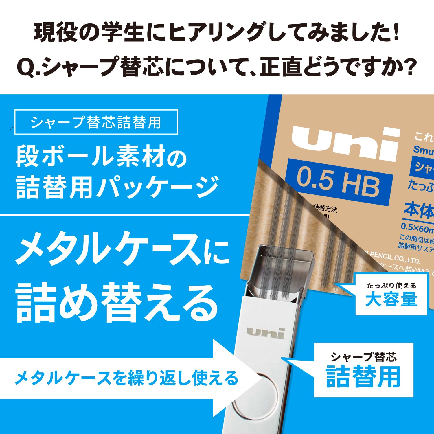 Uni Metal Case. This is a full-metal item that you will love. Made of full metal, this case has a sense of weight and stylish appearance and has excellent handling of the slide opening. Made of full metal for a comfortable feel. This full-metal case is made with only metal parts made of stainless steel material while following the existing "uni" sliding. The case has a built-in spring to assist in movement when sliding open and close, creating a comfortable operation. Because it is built in springs, it has a cushioning feel at the thickness of the case. Lightly press the circle recess and move it up and down to slide smoothly. If you press it with strong force, the rubbing and distortion of the metal will cause roughness or rattling to the metal and the operation may be reduced. A more sophisticated minimalistic design. Maintaining the existing "uni" design concept, such as the square shape and the circular indentation on the front of the case which has become an icon and has been subjected to a minimalistic design. The metal texture gives it a stylish look. Can be used repeatedly with a loved fit. When the lead is out of power, you can buy the "uni" refill and refill it to make it a favorite item and use it over and over again. Product Name: Mitsubishi Pencil Sharp Lead Uni Metal Case 0.5 HB ULSM05HB