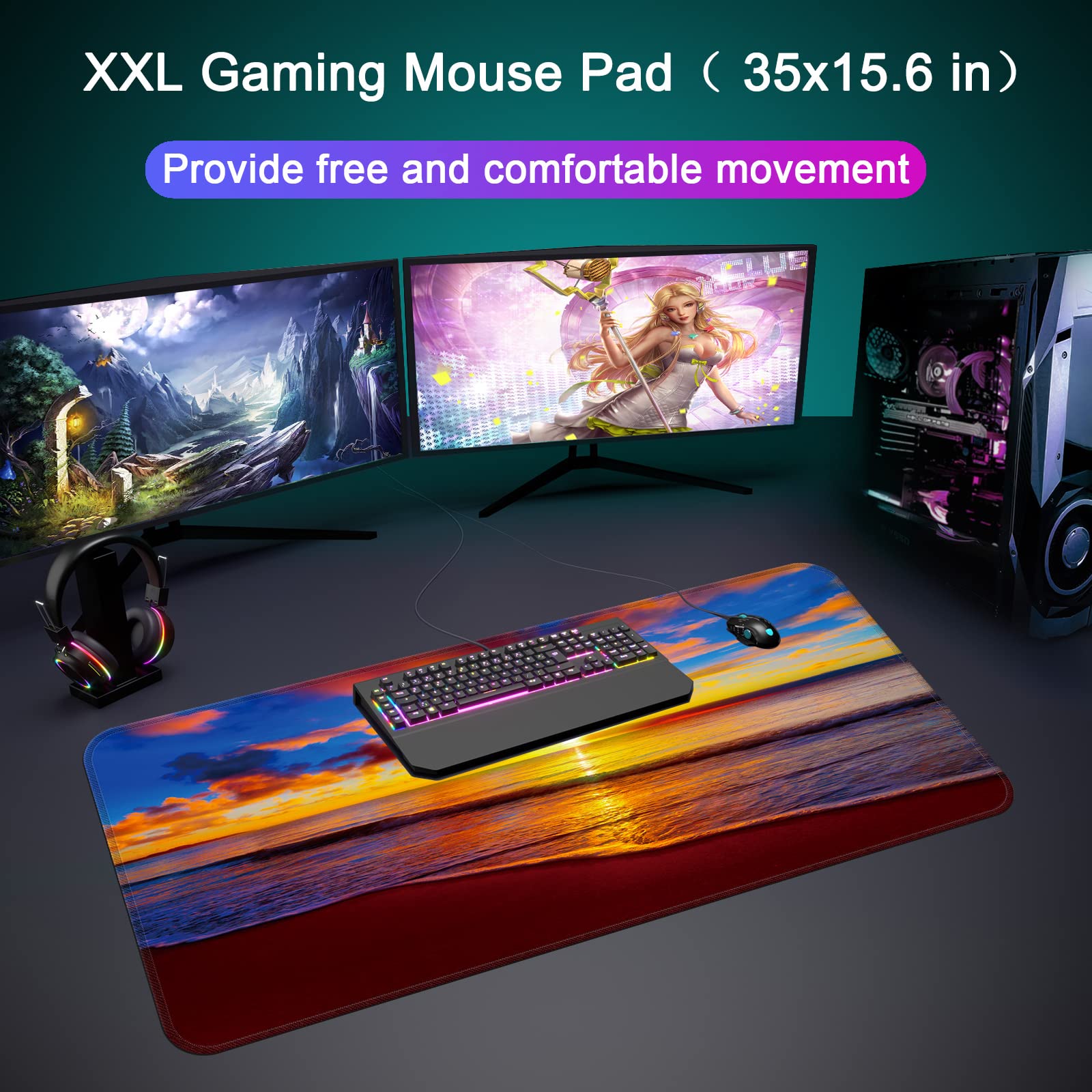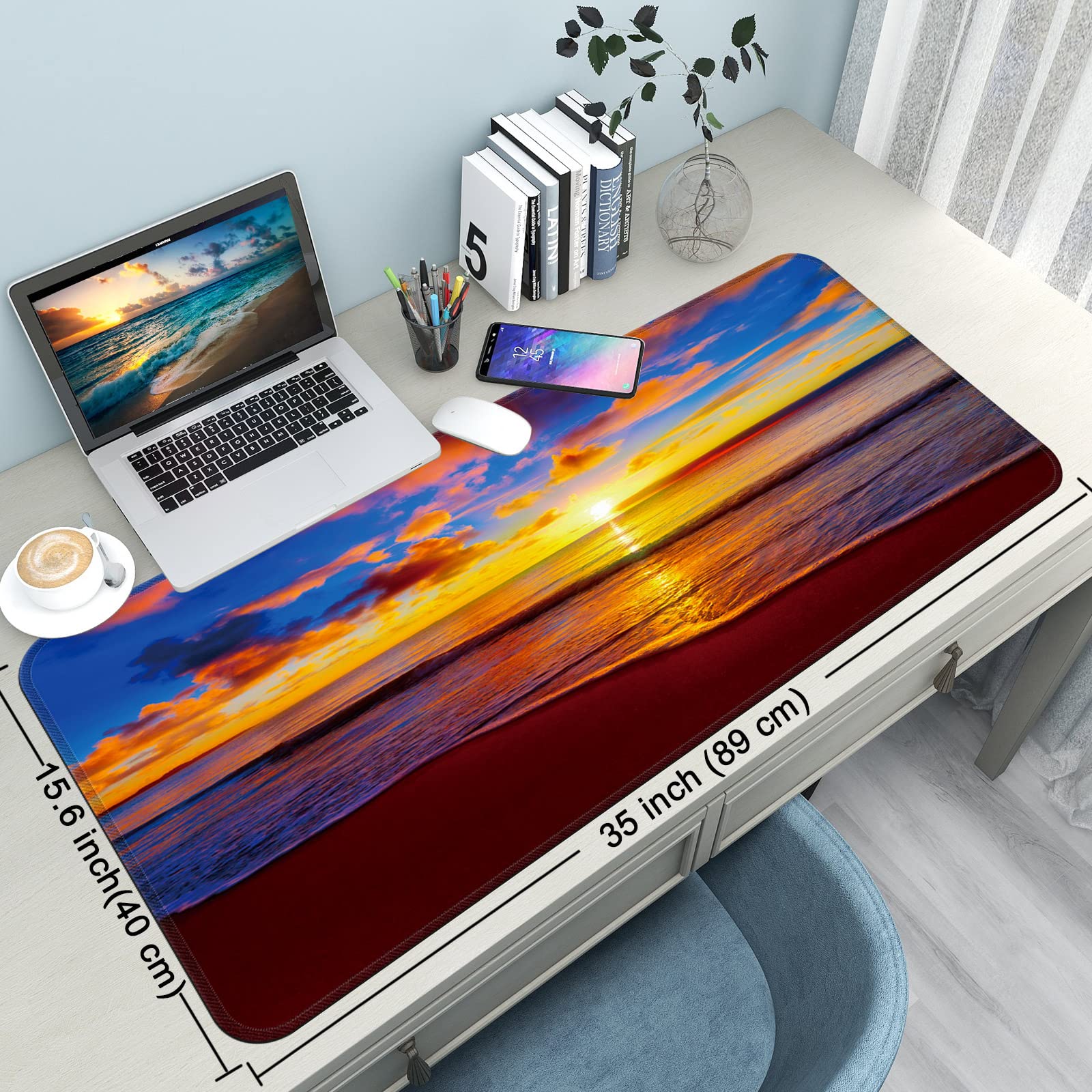 Opitimal Size:The extended desk pad measures 35"x15.6"x0.12 inch ( 89 x 40 x 3 mm), compatible with most Computer / iMac / Laptop . Provide smooth and free movement when you gaming, working or studying.