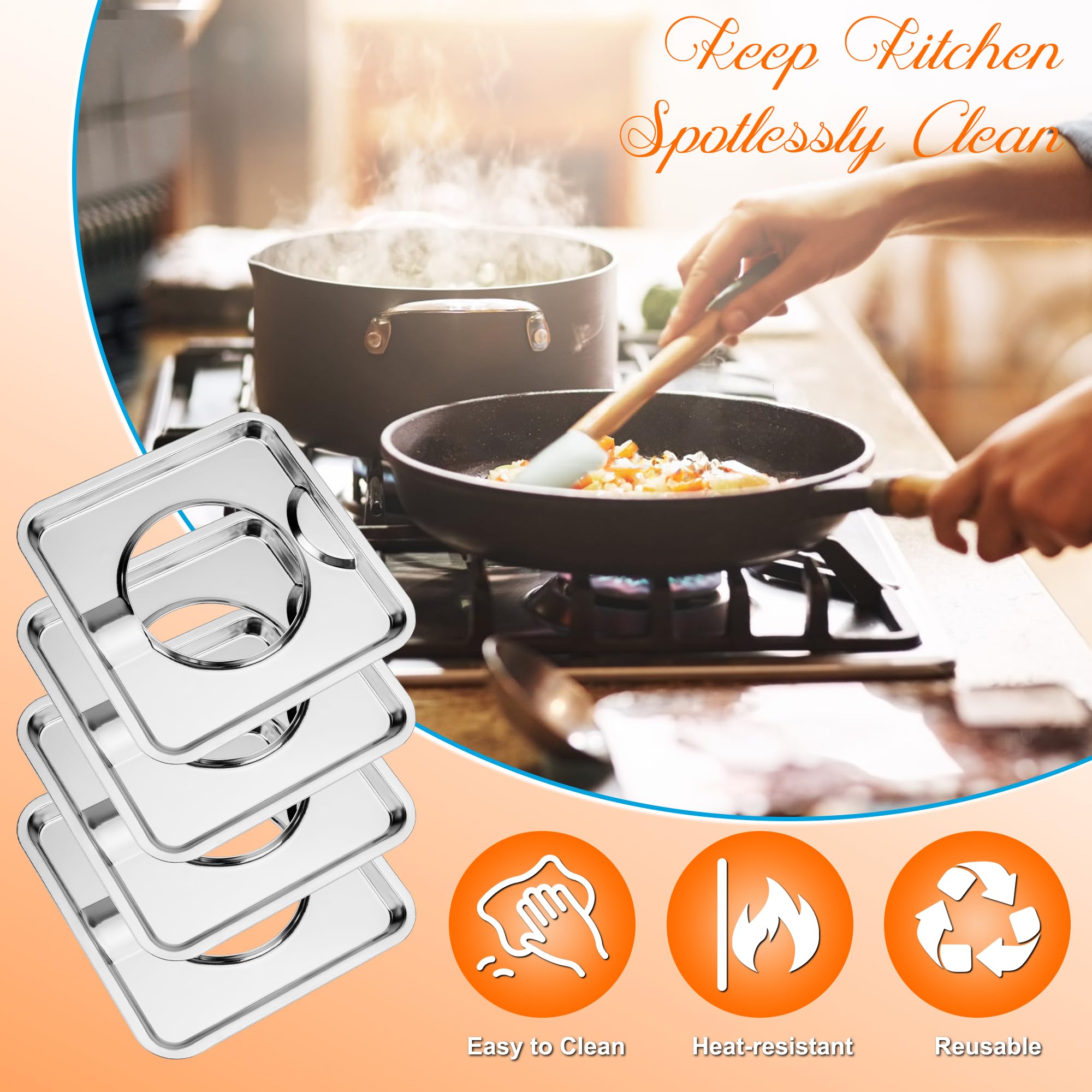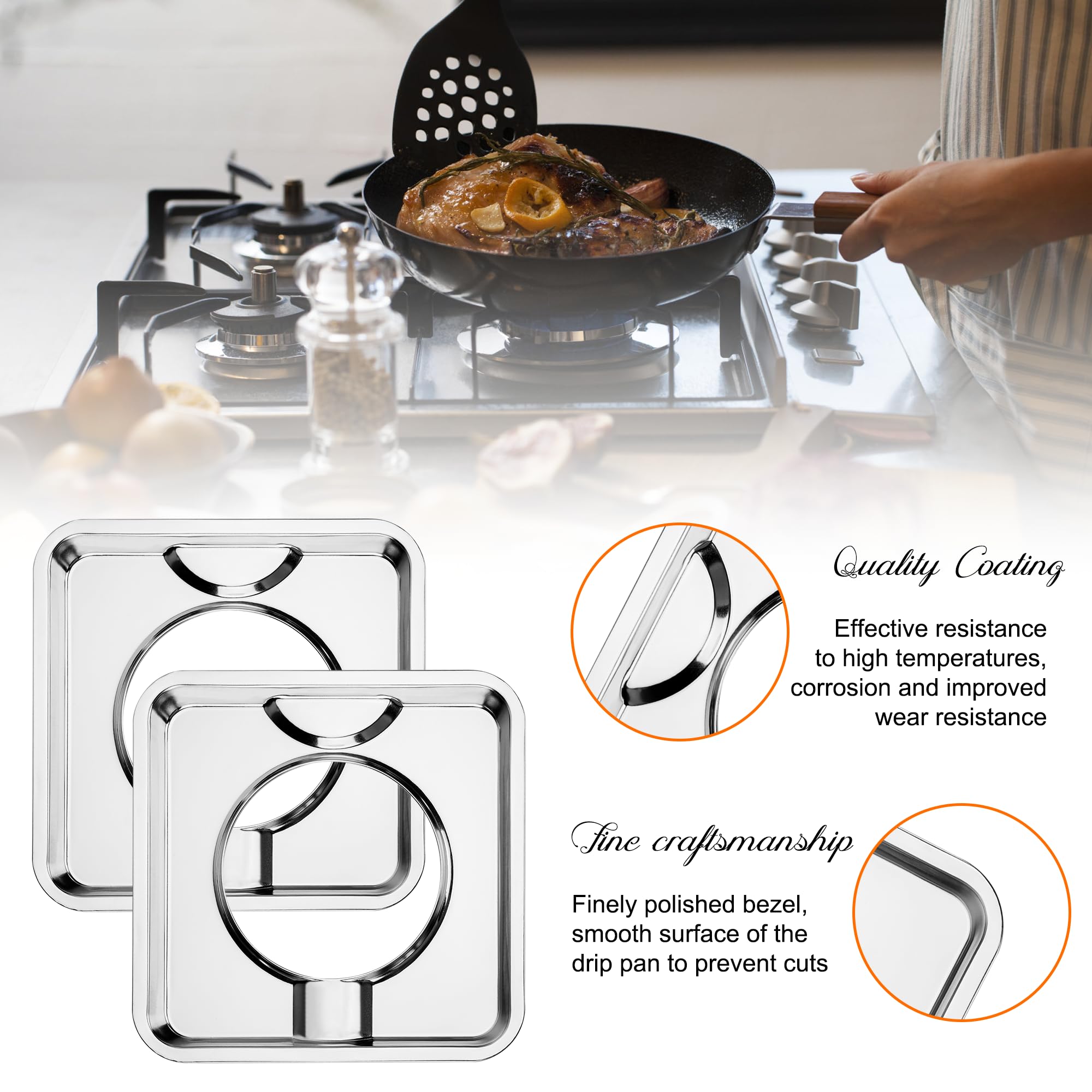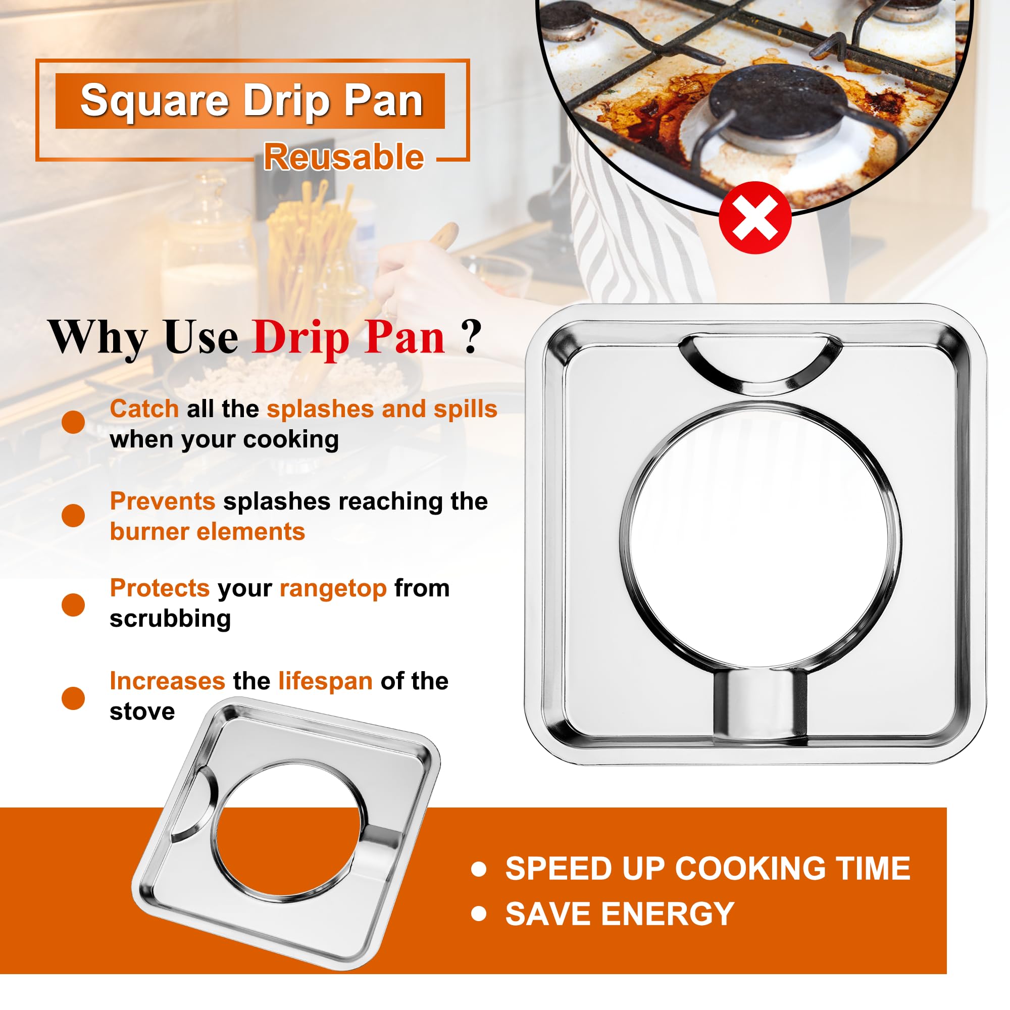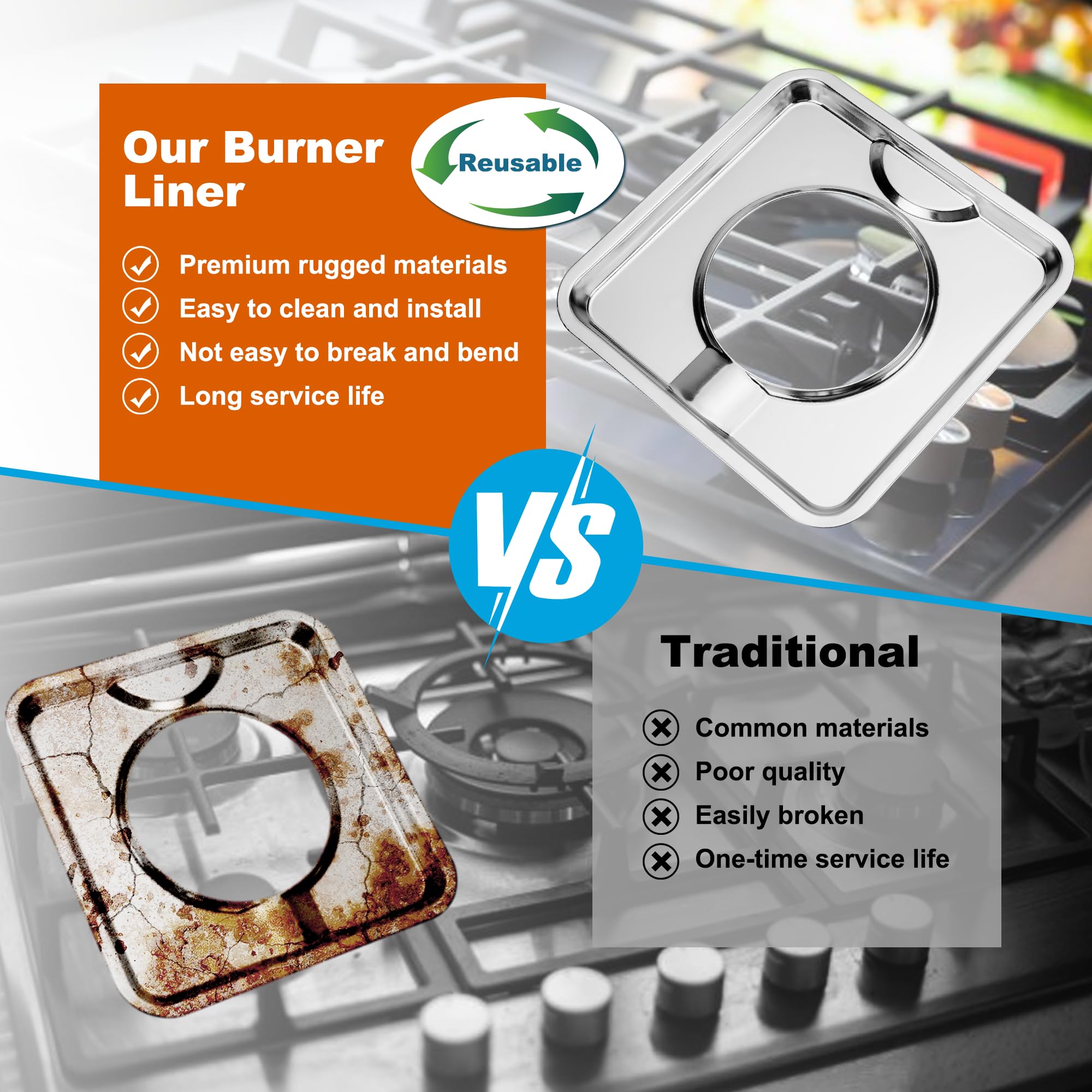 𝗘𝗮𝘀𝘆 𝗜𝗻𝘀𝘁𝗮𝗹𝗹𝗮𝘁𝗶𝗼𝗻 & 𝗥𝗲𝘂𝘀𝗮𝗯𝗹𝗲: For safety, disconnect gas and power and wear gloves before installation. Search for installation videos online and you can install it in a very short time. Soak it in warm water and clean it, you can reuse the drip pan for a long time and save your money. Replacing these square drip pans will keep your kitchen tidy and give your stove a new look
