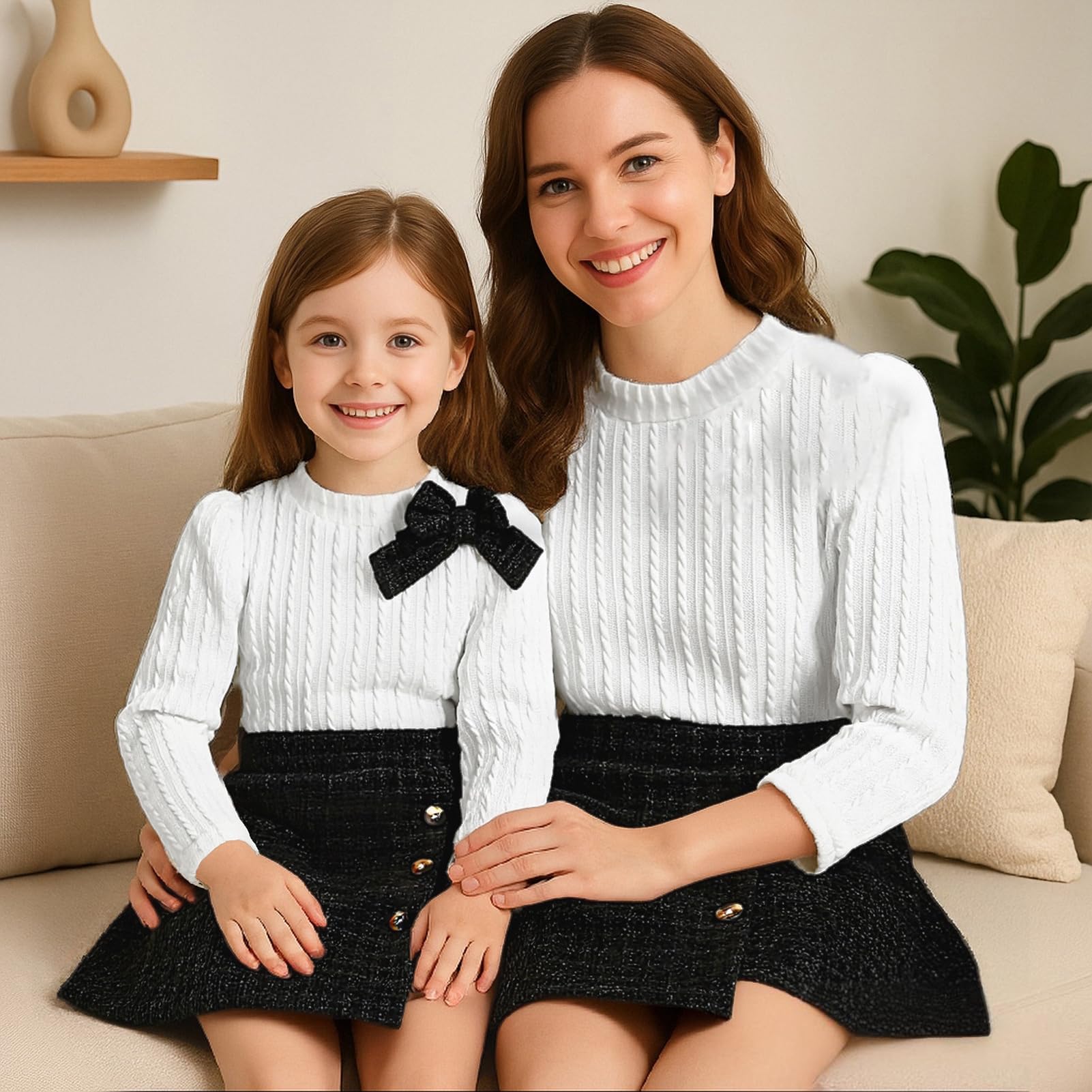 Design: Kids Little girl spring fall winter skirt set,knitted cotton long sleeve solid color top, button mini skirt with elastic waist , winter fashion warm toddler girls clothes outfits.