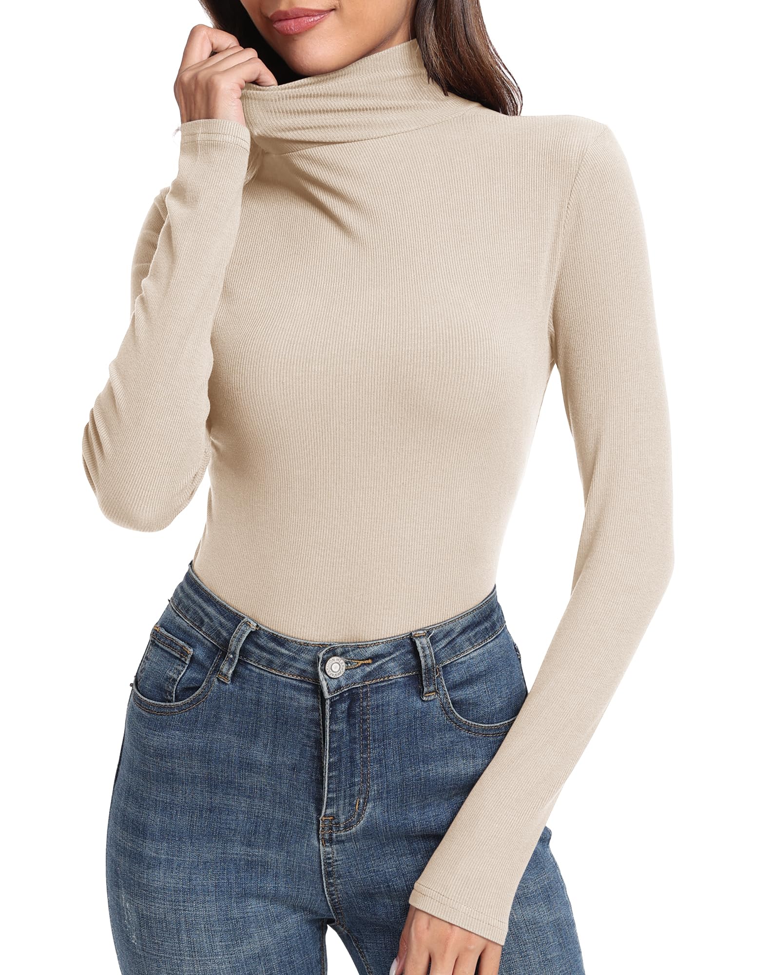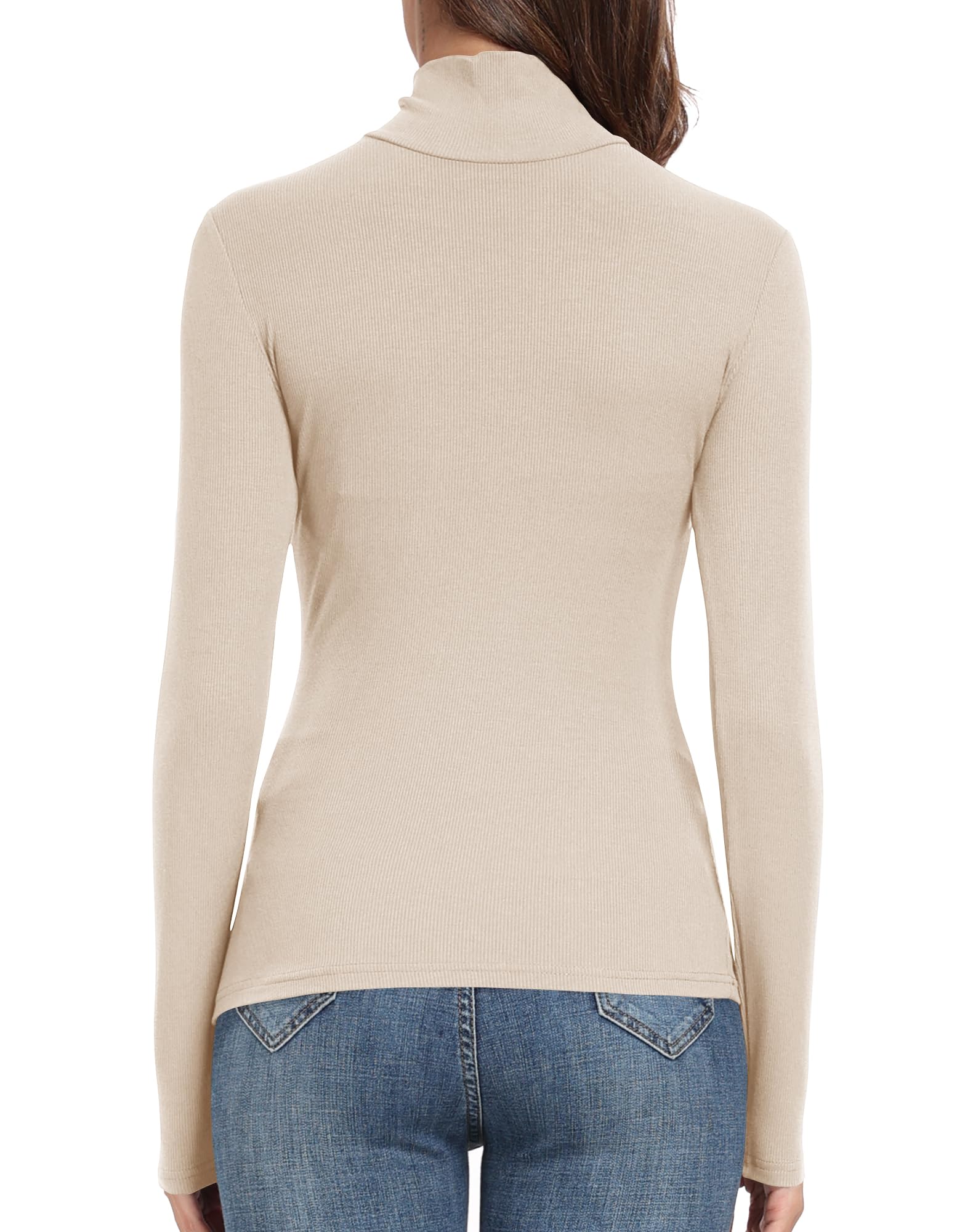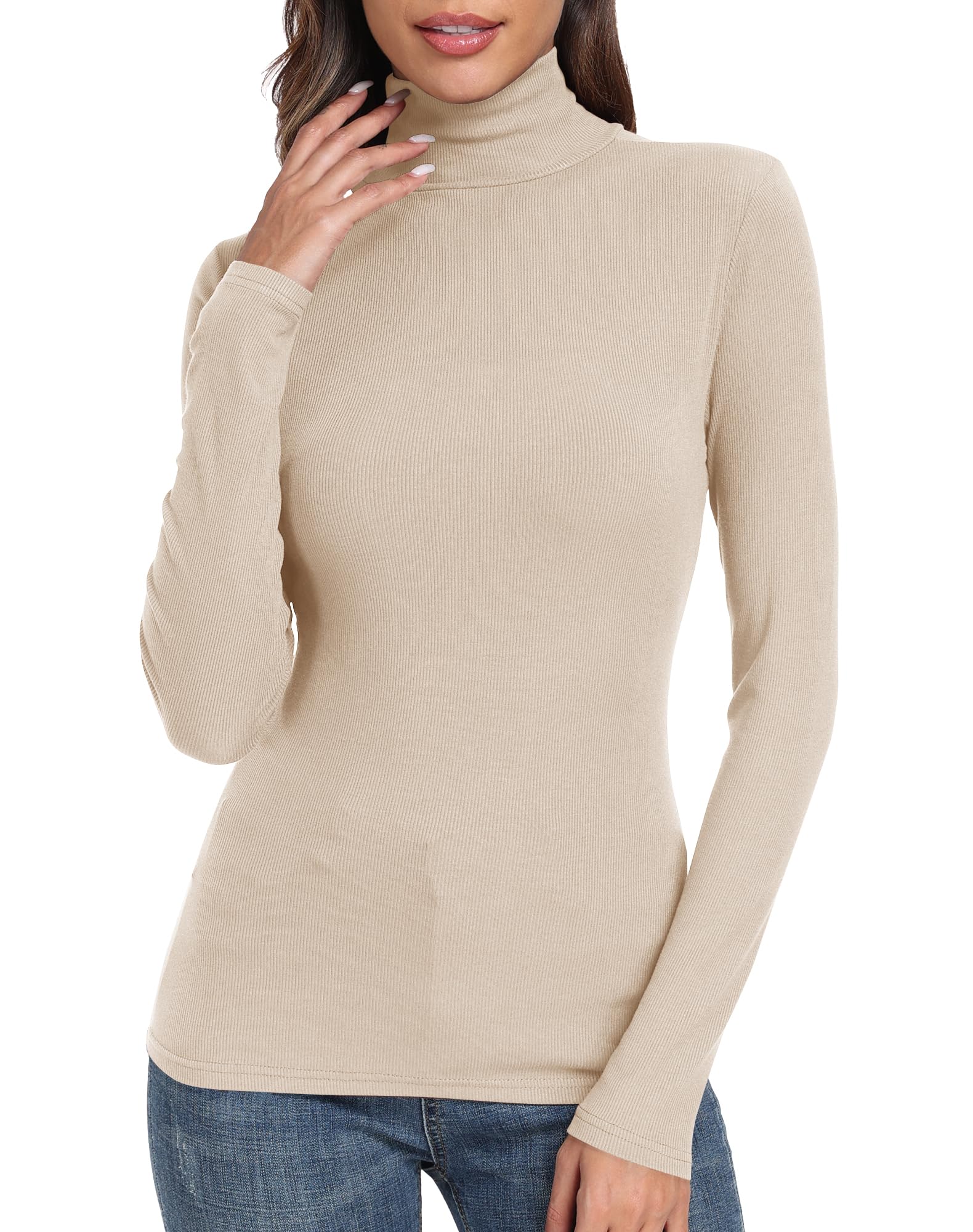 Material: Ribbed knit fitted turtle neck shirt. Soft, stretchy and comfortable ribbed turtleneck for women.