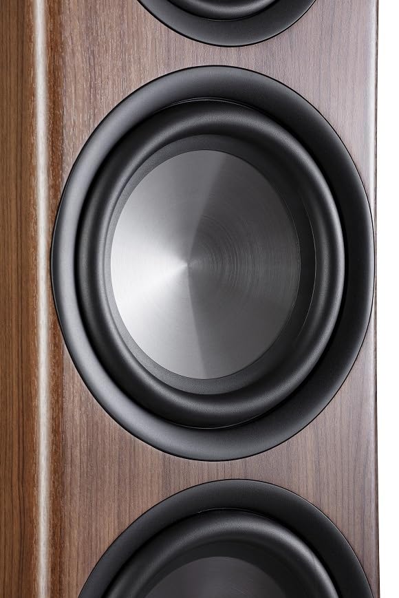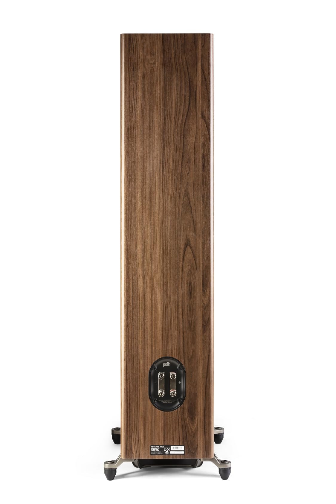 Polk Reserve R700 Premium Floorstanding Speaker for Unmatchable Audio Performance. Polk's Reserve R700 Floorstanding Speaker is a high-performance tower loudspeaker that delivers ultra-clear and crisp highs, detailed midrange, and effortless bass. It features a 1" Pinnacle Ring Radiator Tweeter and dual 6.5" Turbine Cone Woofers with Hi-Res Audio Certification, Dolby Atmos, and IMAX Enhanced support to produce high-quality sound with pure detail. Whether you're listening to music, watching movies, or playing video games, the R700's bass reflex cabinet with a down-firing port, dual 8" long-throw drivers, and Polk's Patented Power Port 2.0 with X-Port Technology ensures distortion-free bass for an immersive audio experience. Its binding posts ensure an easy, efficient setup with a lossless connection. This speaker includes rubber feet for hardwood, vinyl, laminate, and tile floors, and spike feet for carpet floors. These adjustable feet allow speaker leveling according to your preference. Add another R700 tower speaker, two R200 bookshelf speakers, an R400 center channel, and three R350s & add an R900 height module for depth (all sold separately) to create a multichannel surround sound system. The R700 is compatible with the latest file formats like DSD, FLAC, WAV, ALAC, and MQA, so you can experience superior audio performance at home.