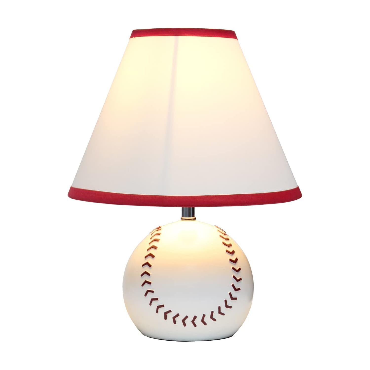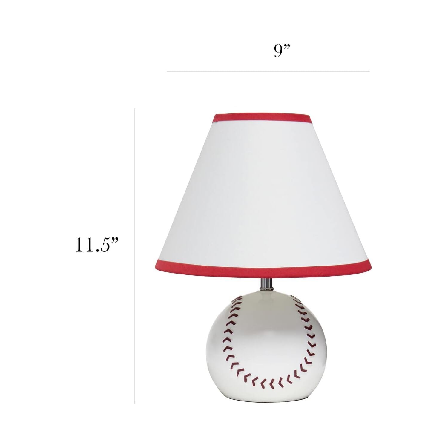 FUN SPORTS STYLED LAMP: A neutral lamp to accommodate all baseball teams' décor, memorabilia spaces, man cave rooms, and more! This lamp features a realistic baseball shaped base with a matching red trim and white fabric shade.