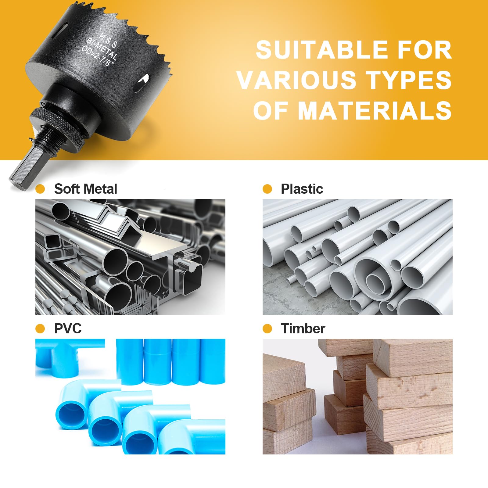 ⚙️【Accurate Cutting】 The increased hardness(70-80HRC) of the M42 bi-Metal and the optimized tooth geometry allow our hole saws to provide faster and more accurate cutting diameter than standard hole saws, the errors of the cut size are less than one millimeter.