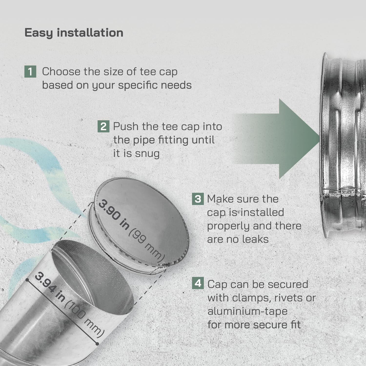 UNIVERSAL 4” DUCT END CAP – Fits standard 4-inch round metal ducting, dryer vents, exhaust pipes, and HVAC tubing. Provides a tight, secure closure to seal unused duct openings and prevent air leakage, dust, and debris entry.