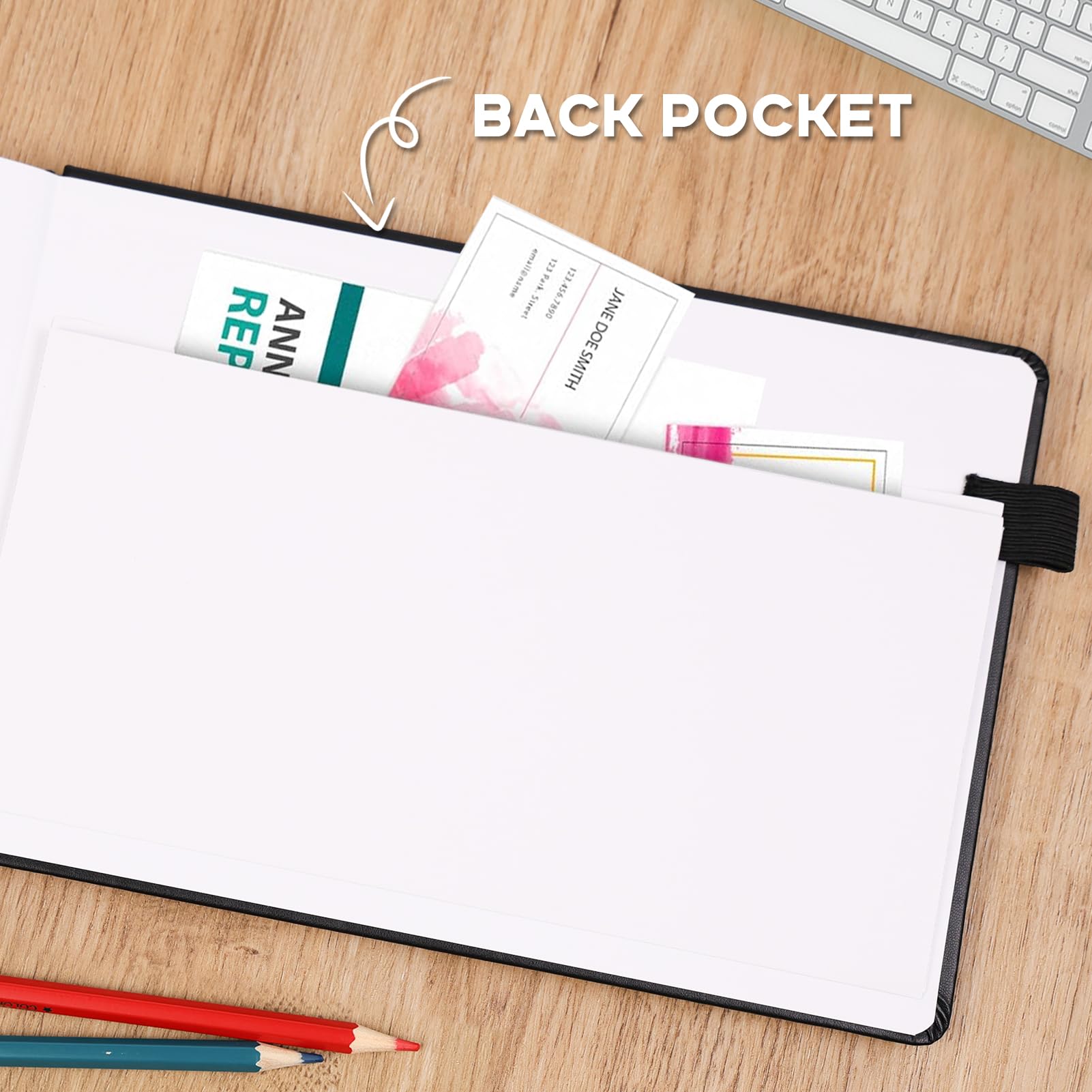 *Built Tough for Daily Use* Featuring a durable vegan leather hardcover, thick 100gsm bleed-proof paper, elastic closure band, and convenient pen loop, this journal withstands heavy daily use. The privacy guard sheet and large back pocket keep sensitive information secure
