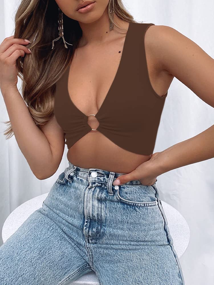 Description AEVZIV Sexy Crop Tops For Women Sleeveless Deep V Neck Plunge Ring Cleavage Cropped Tank Top About AEVZIV AEVZIV was established in early 2011, focusing on providing our customers with affordable, stylish, and high-quality clothing AEVZIV focus on women's tops, we will show you all kinds of trendy tops for the first time AEVZIV highlights the real demand of customers everywhere.We always put the interests of customers first Material: 95% polyester and 5% spandex,high stretchy,soft and comfortable fabric Sizes of sexy crop tops for women: (SizeXS) upper bust:28.0-33.5 inches; lower bust:21.3-26.8 inches (SizeS) upper bust:29.6-35.1 inches; lower bust:22.8-28.3 inches (SizeM) upper bust:31.2-36.7 inches; lower bust:24.3-39.8 inches (SizeL) upper bust:32.8-38.3 inches; lower bust:25.8-31.3 inches Key Features: *sexy crop tops *cropped shirts *Deep v neck *fitted tank tops Occasion: ----Casual, party, club, night out, dating, wedding, holiday, cocktail, work, business, shopping ----And some other special occasions Note: ----1. Color may vary little due to different display. We will try our best to show the color closest to the actual one ----2. There can be slightly differences by manual measurement