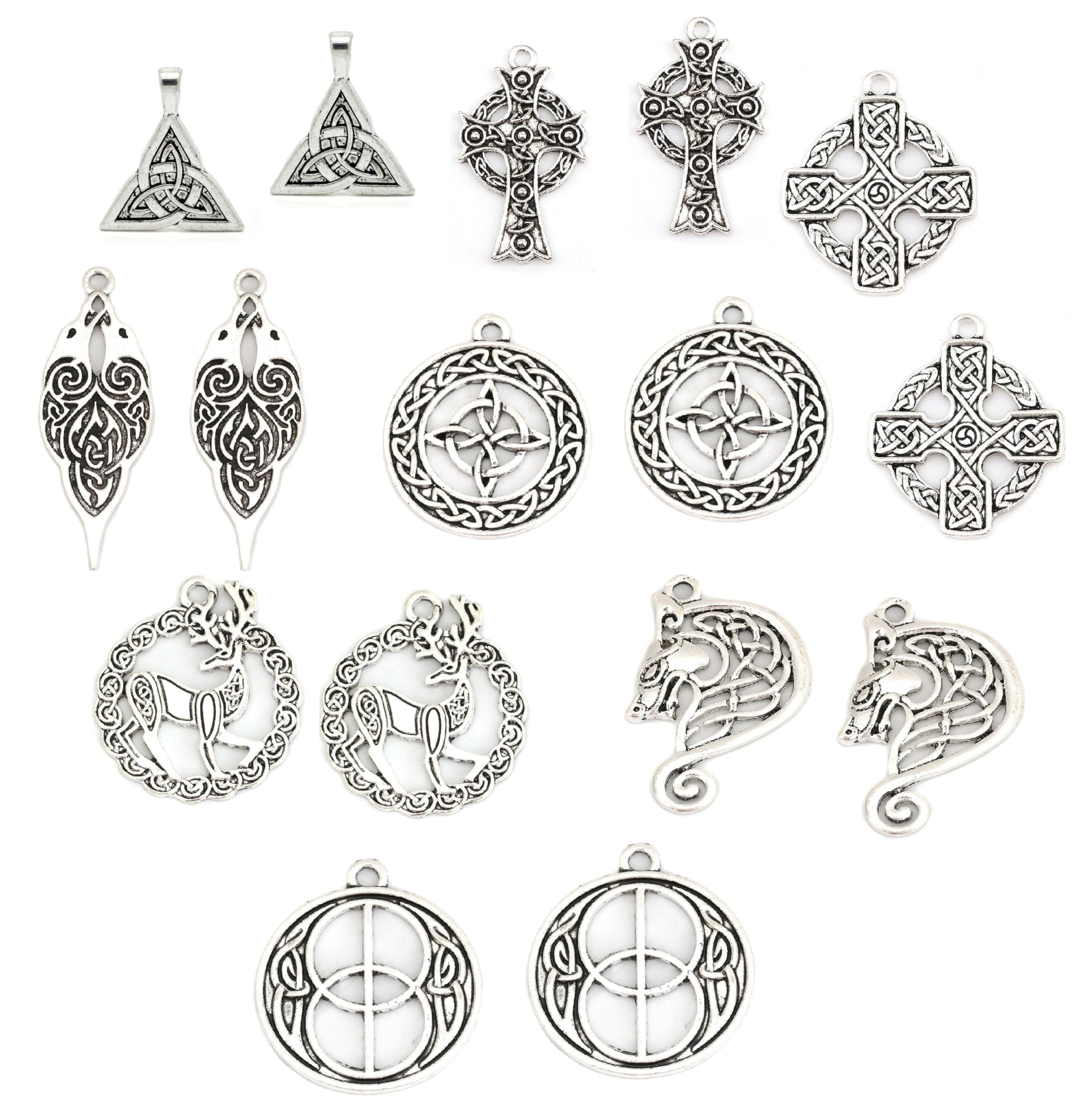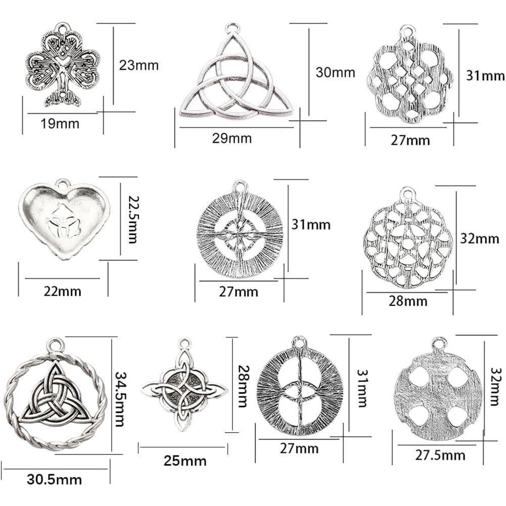 ❤[1 BOX 20PCS]: Totally 20 pieces celtic knot charms pendants, 10 styles as pictures, each style 2pcs. Variety styles gives you multiple choices. A plastic box is included to help you store this jewelry findings.
