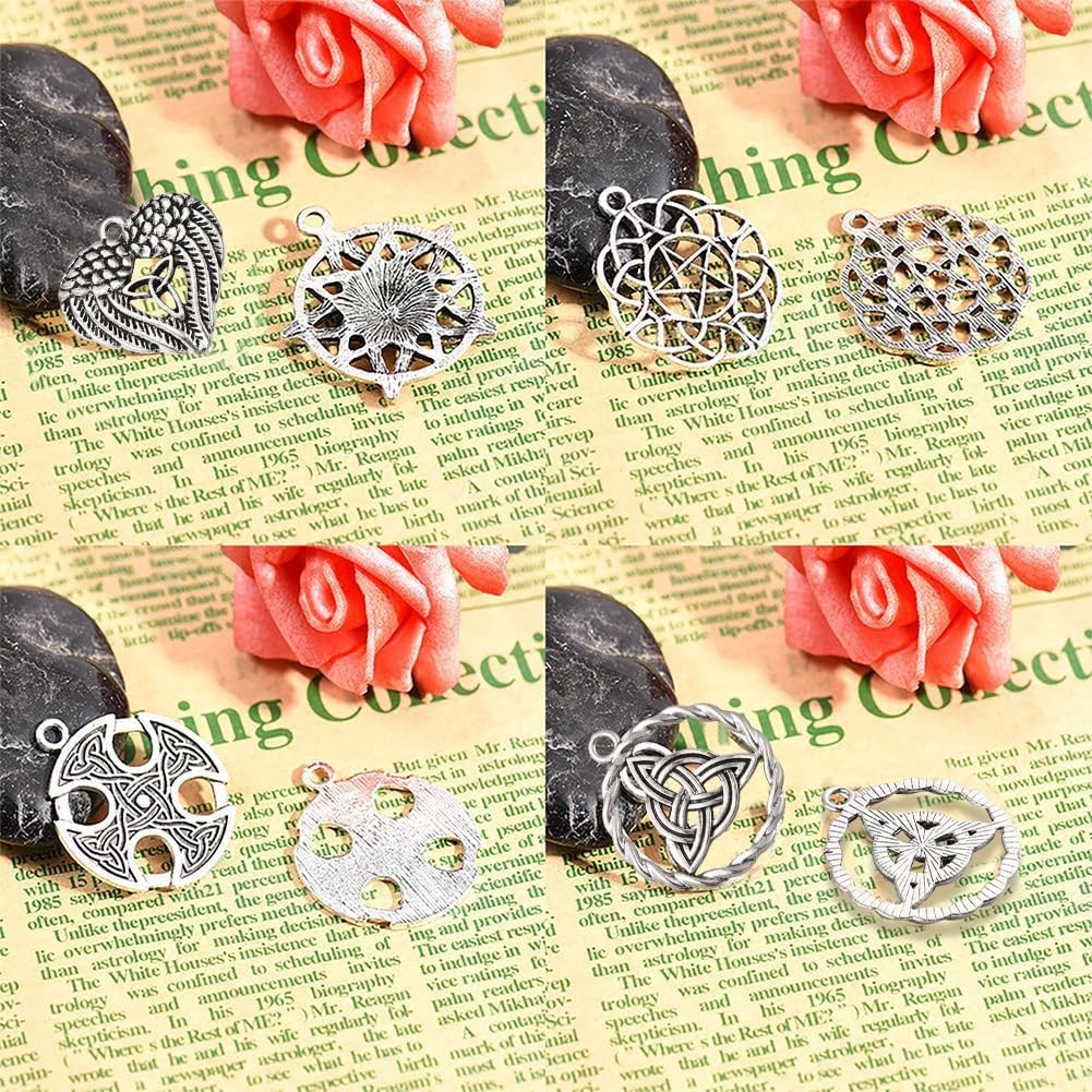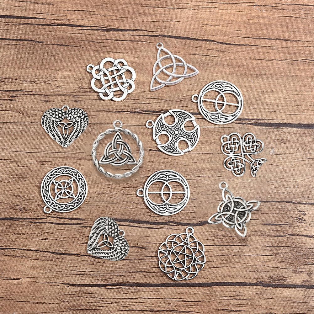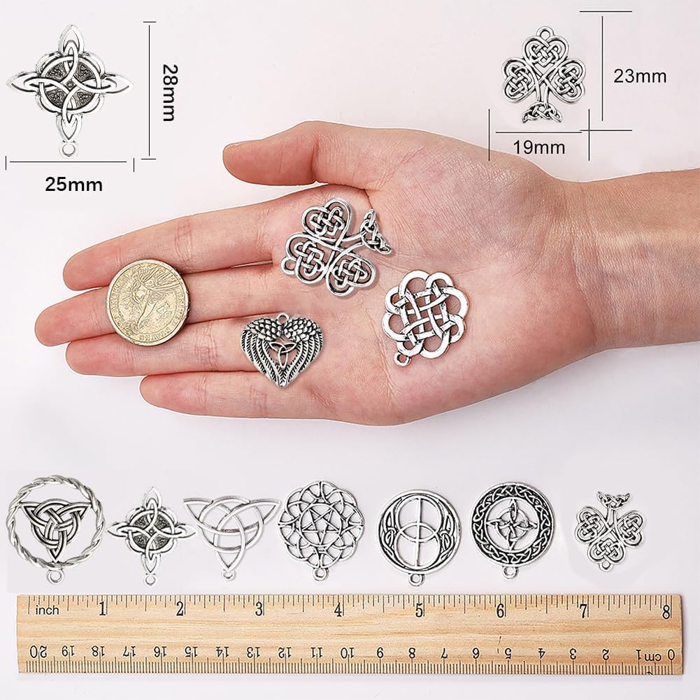 SUNNYCLUE 20Pcs Celtic Knot Charms Pagan Charms Pendants Antique Silver Charms DIY Jewelry Making Bracelets Necklace for Beginners Adults Brand:SUNNYCLUE Material:Alloy Color:Antique Silver Usage:For DIY Jewelry Making Feature: ❤[WHAT YOU WILL GET]: A total of 20pcs knot theme charms.10 different styles antique silver pendant accessories,each style has 2pcs. ❤[ALLOY MATERIAL]: These charms are made from high quality of alloy,no fading,non deformable,durable and sturdy,anti rust and hard to break. ❤[SILVER COLOR]: Celtic charms come with antique silver color,make your products more old looking,not easy to tarnish,long enough. Size & Quantity: Wolf Head: 35x25x3mm, Hole: 2mm, 2pcs Flower with Star: 32x28x2mm, Hole: 2mm, 2pcs Chinese Knot: 31x27x2mm, Hole: 2mm, 2pcs Flat Round: 32x27.5x1.5mm, Hole: 2mm, 2pcs Flat Round: 31x27x2mm, Hole: 2mm, 2pcs Flat Round with Star: 34x31x4mm, Hole: 2mm, 2pcs Flat Round: 31x27x2mm, Hole: 2mm, 2pcs Heart: 27x31x2mm, Hole: 2mm, 2pcs Flat Round: 30.5x26x1.5mm, Hole: 2mm, 2pcs Flat Round with Triskelion: 31x27x2mm, Hole: 2mm, 2pcs Bead Containers: 7.4x7.2x1.7cm, 1pc