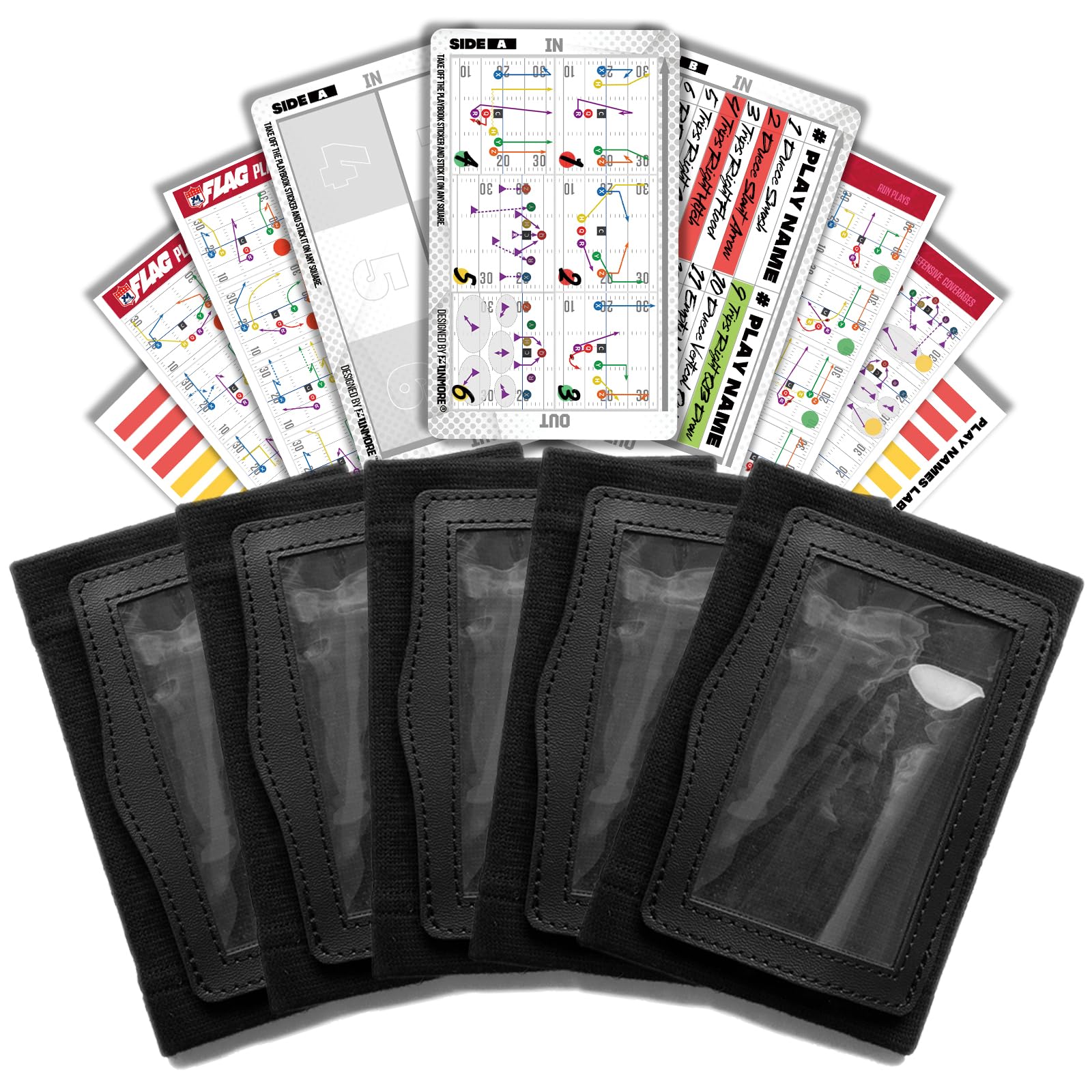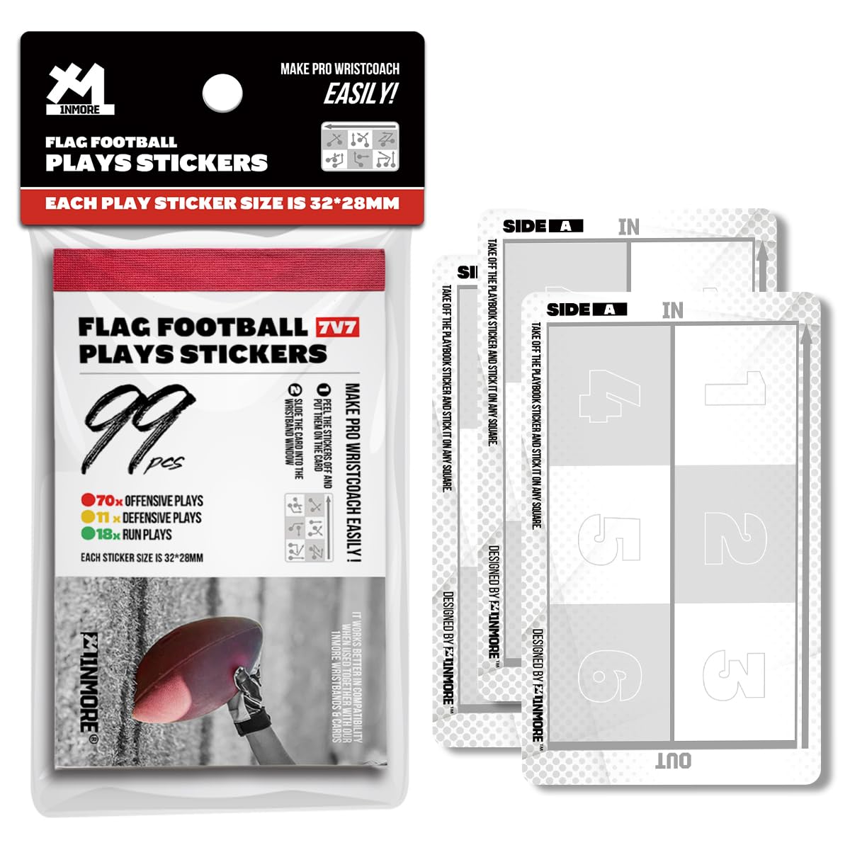 Tactical Stickers Included: Our kit comes with 43 commonly used football tactical stickers covering offensive, defensive, and running plays. These stickers can be affixed to any grid on our tactical cards, allowing you to create a unique tactical wristband. Made from PVC, they are not only durable but also reusable