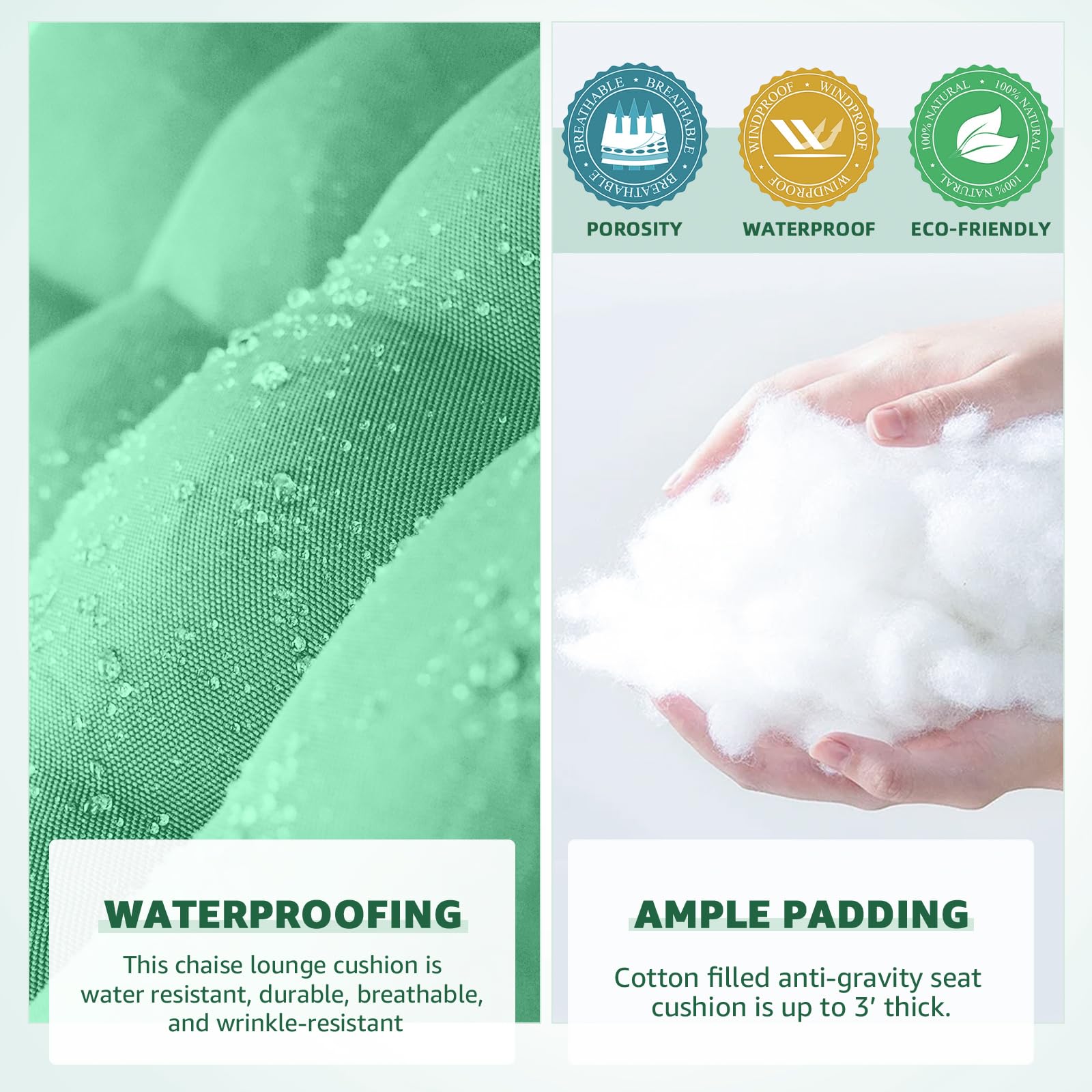 【Premium Materials】Made of high quality fabric, this lounge chair cushion is waterproof, fade-resistant and skin-friendly. Filled with enough PP cotton which make the outdoor chaise lounge cushions soft and comfortble.