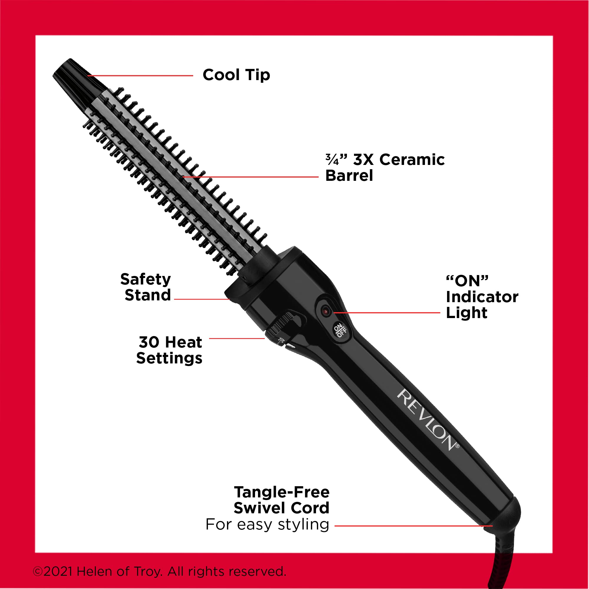 Revlon Hair Tools is dedicated to helping women achieve beautiful hair they'll love. Whether women desire gorgeous blowouts, big enviable waves, striking straight locks, or the perfect fashion accessory to complete the look, Revlon has the styling tools you desire. Our Perfect Heat line comes with triple ceramic coating designed for optimal heat, reduce heat damage for the perfect styling result. NEW & IMPROVED DESIGN with improved thumb rest, improved heat dial with resistance to prevent accidental change of temperature and a ergonomic handle. Our Perfect Heat Curling Irons have multiple heat settings up to 400° F high heat, dual voltage so you can use anywhere, auto shut off for a peach of mind and a 6 ft swivel cord for no kinks.