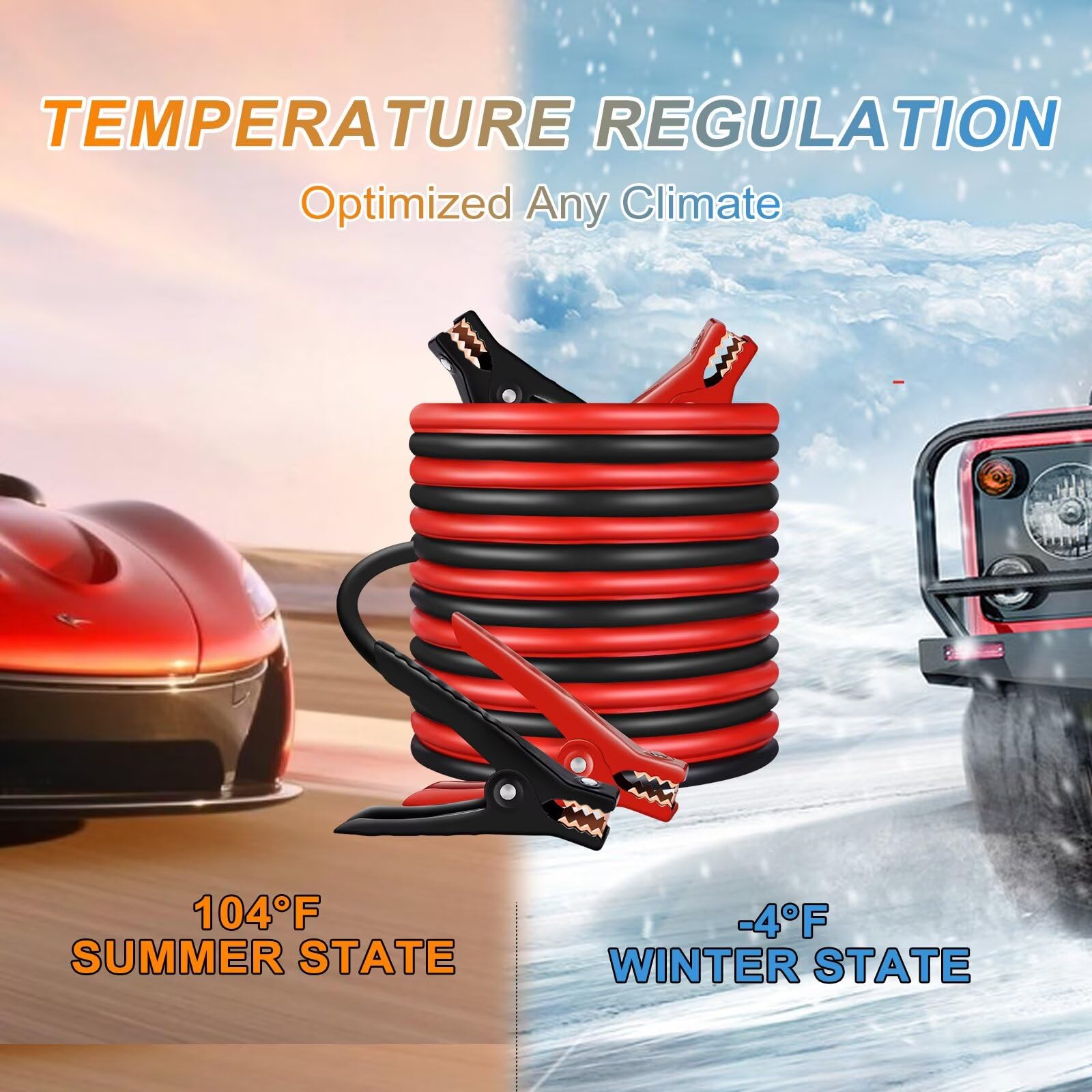 HEAVY DUTY CCA JUMPER CABLES : Our jumper cables are made of high-density copper-clad aluminum wire core, offering ultra-high conductivity. The battery booster cables are coated with thick double-layer rubber, making them safer and more wear-resistant during use