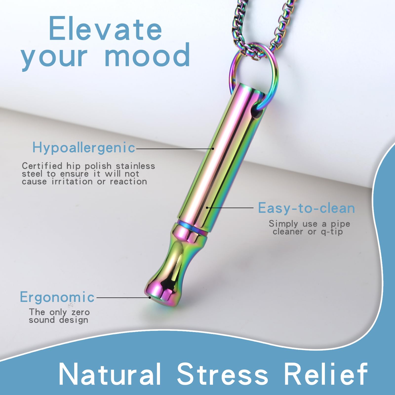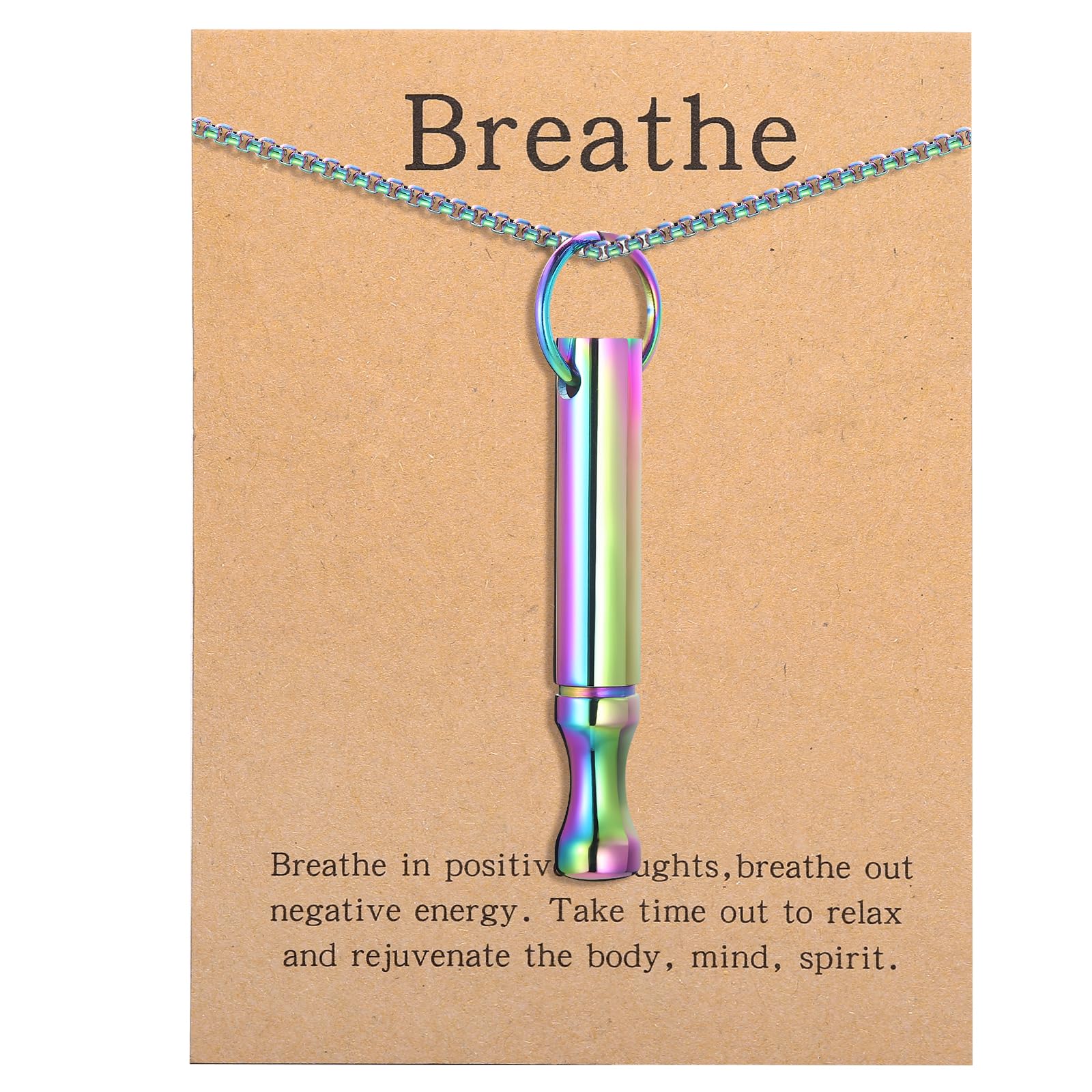 MINDFULNESS BREATHING NECKLACE: Take a slow inhale through your nose for 4 seconds, hold for 7 seconds, then exhale slowly using the breathing tool for 8 to 10 seconds. Repeat for several cycles. This breathing technique will naturally calm your body and mind.