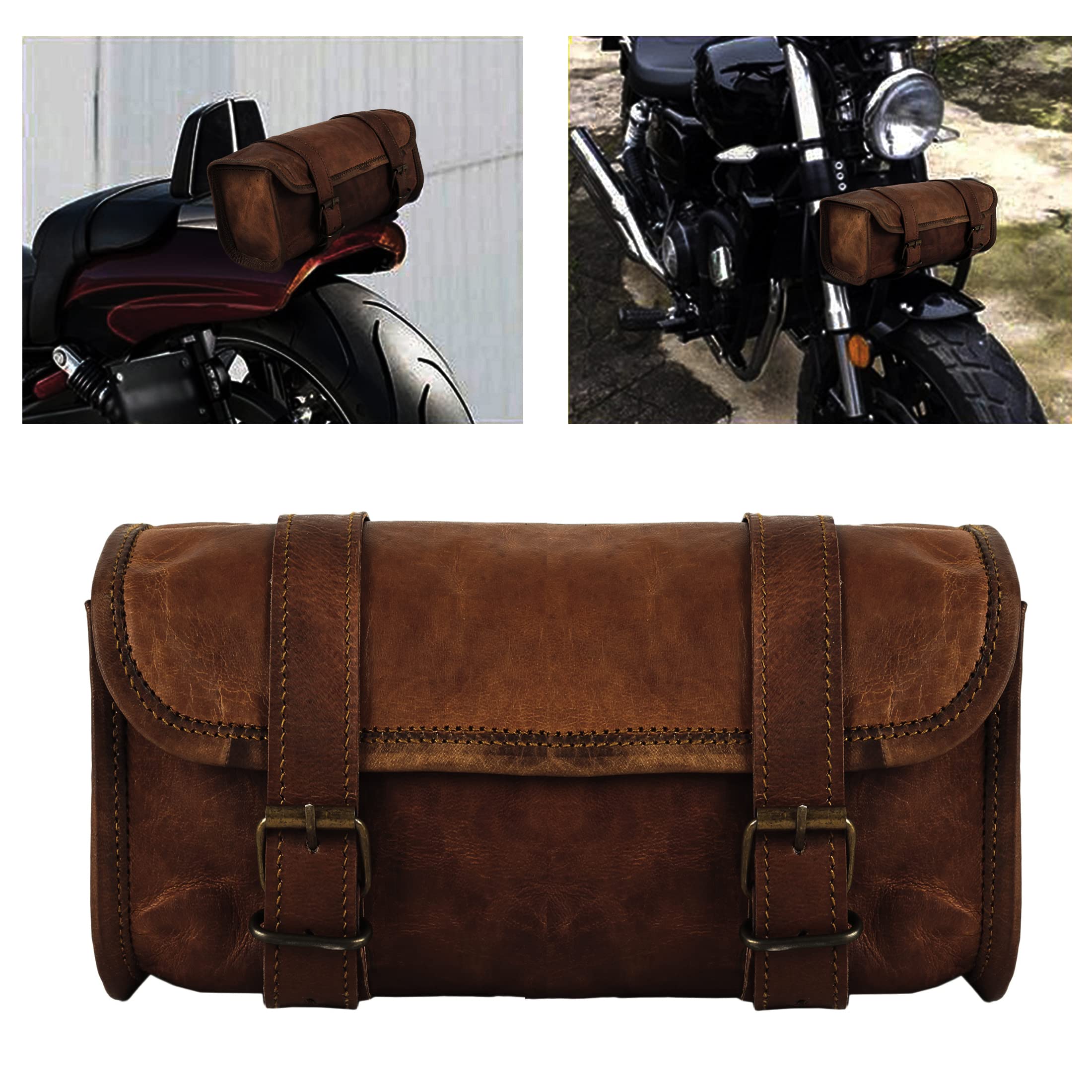 Two Metal strap buckels- easy to open. There are two side flaps in this motorcycle bag to prevent the items from failing out on your bumpy ride.