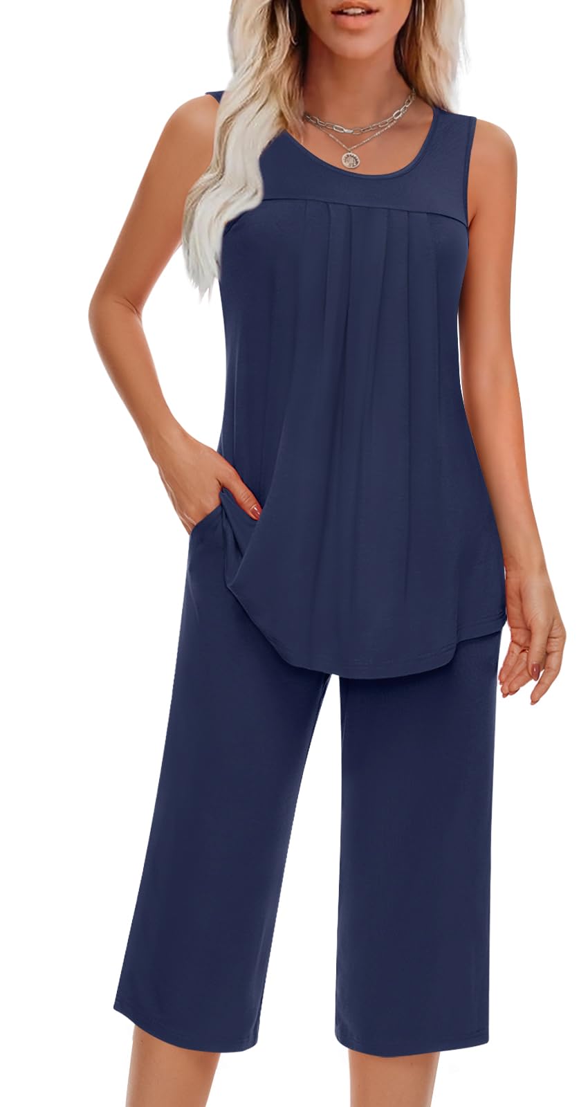 Occasion: This lightweight and comfortable women's summer sleeveless set can be used in various occasions. You can wear it as home clothes to sleep or cook; You can also wear it to go out for a dog walk or morning run, of course, this is also a good set for doing yoga exercises