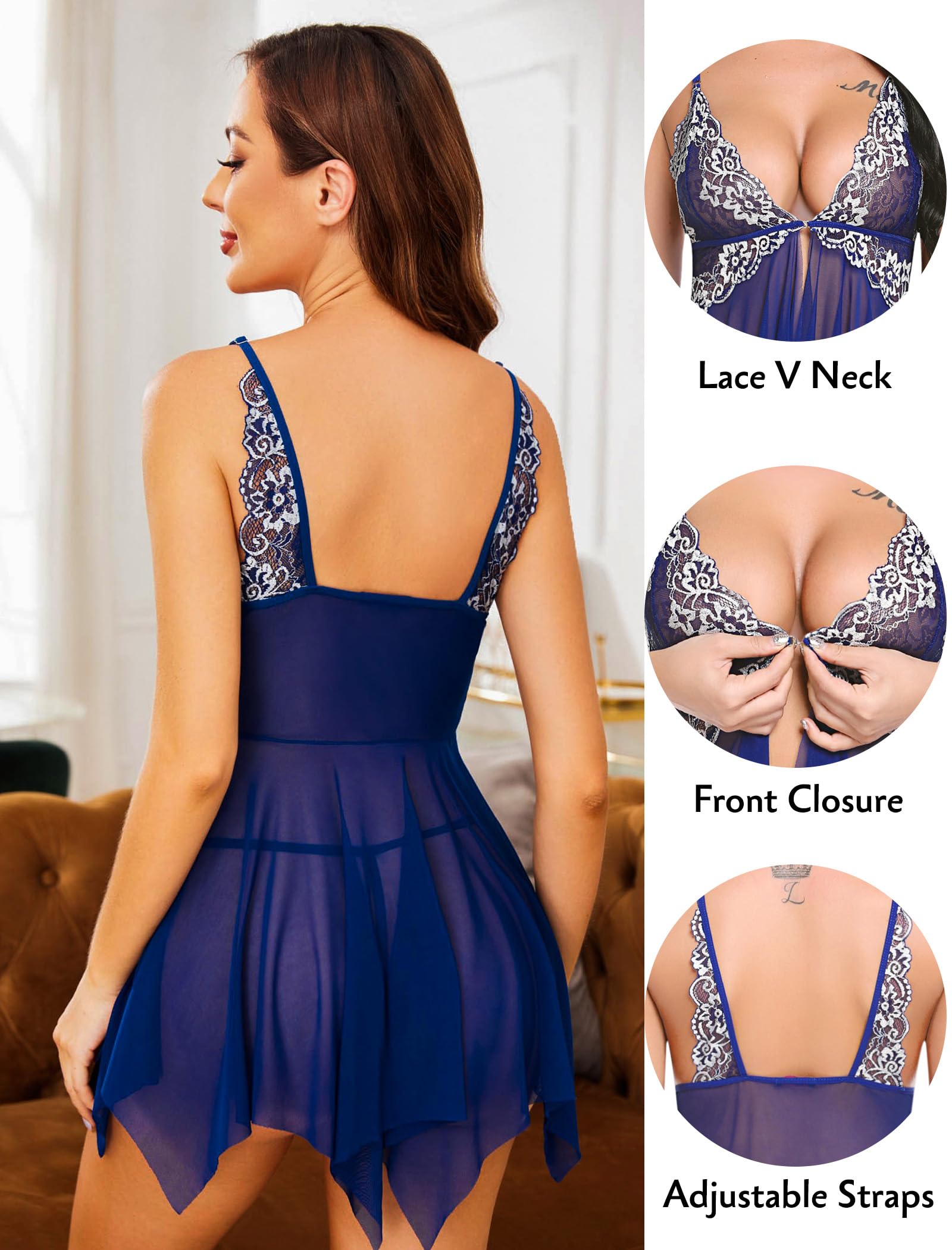 Avidlove lingerie for women with flattering and full asymmetrical hem to highlights your elongated legs' line, adjustable spaghetti straps to offer perfect fit, and the true beauty is shown through the bicolor floral lace cups