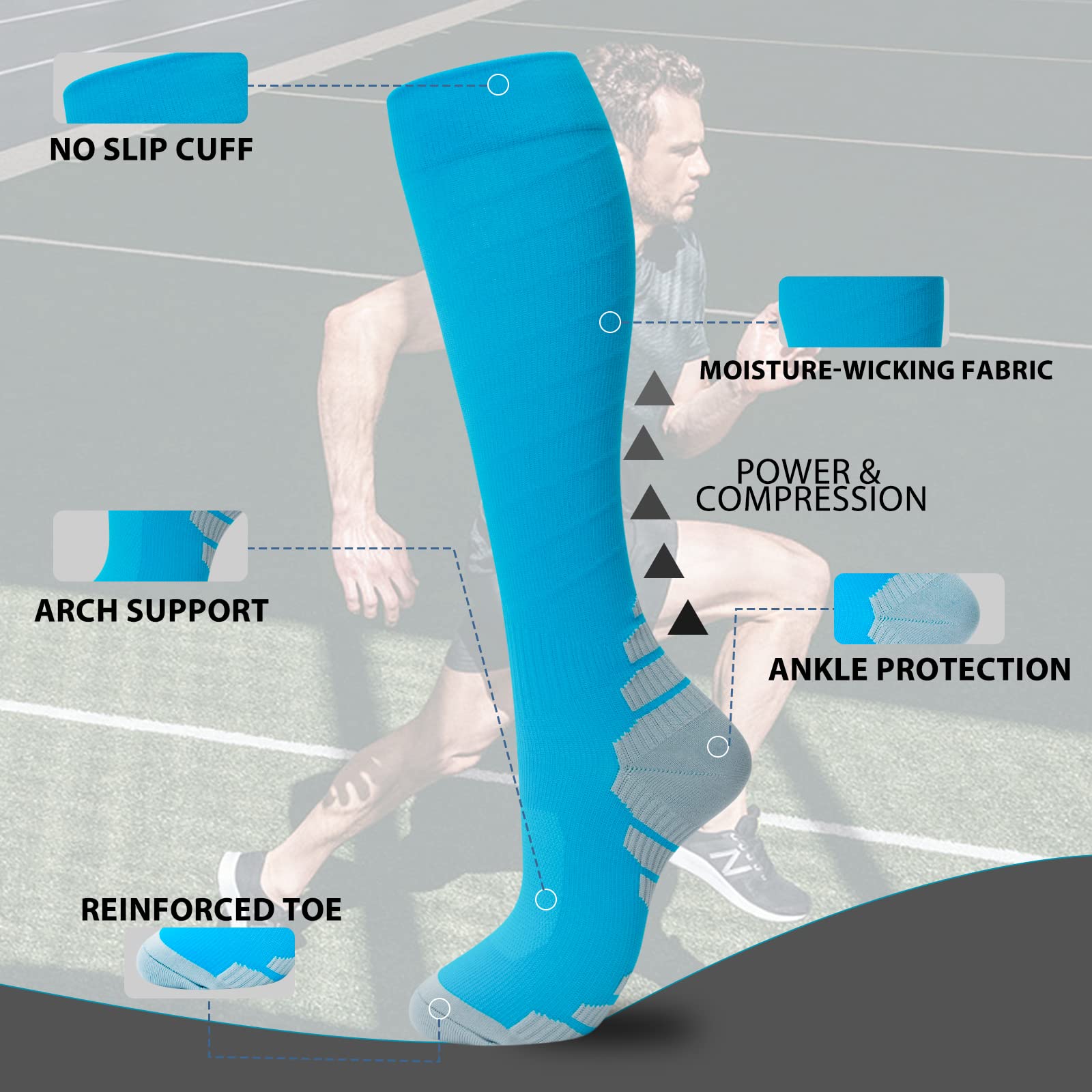 SOCKS FOR WOMEN: 20-30mmHg circulation compression socks are with moderate compression and are recommended by doctors and trainers. Nurse compression socks create the highest support pressure at the ankle and gradually decrease along the legs, making your legs more comfortable.