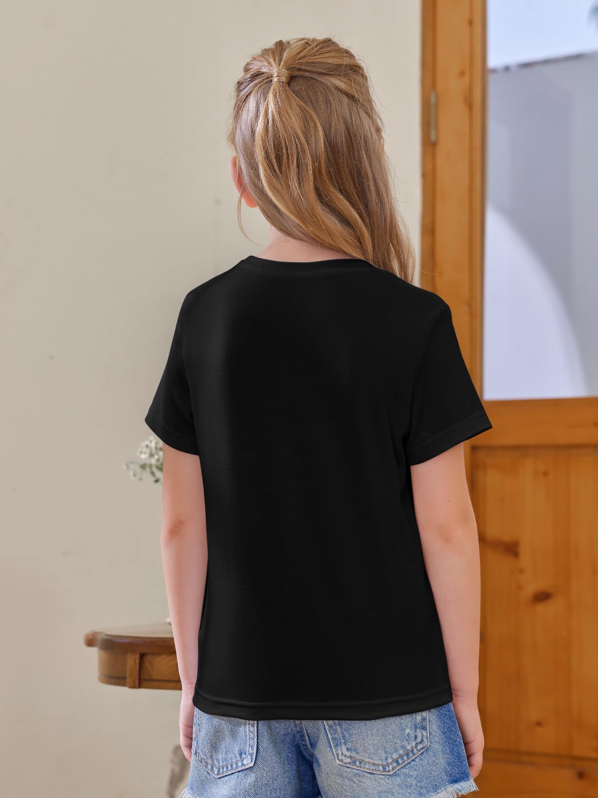 Match: These girls short sleeve T-shirts can be easily paired with shorts, skirts, jeans, overalls, sweatpants, flats and sneakers. Or pair it with a cardigan or jacket in spring and fall. A classic and basic tops that is cute and fashionable and will never go out of style
