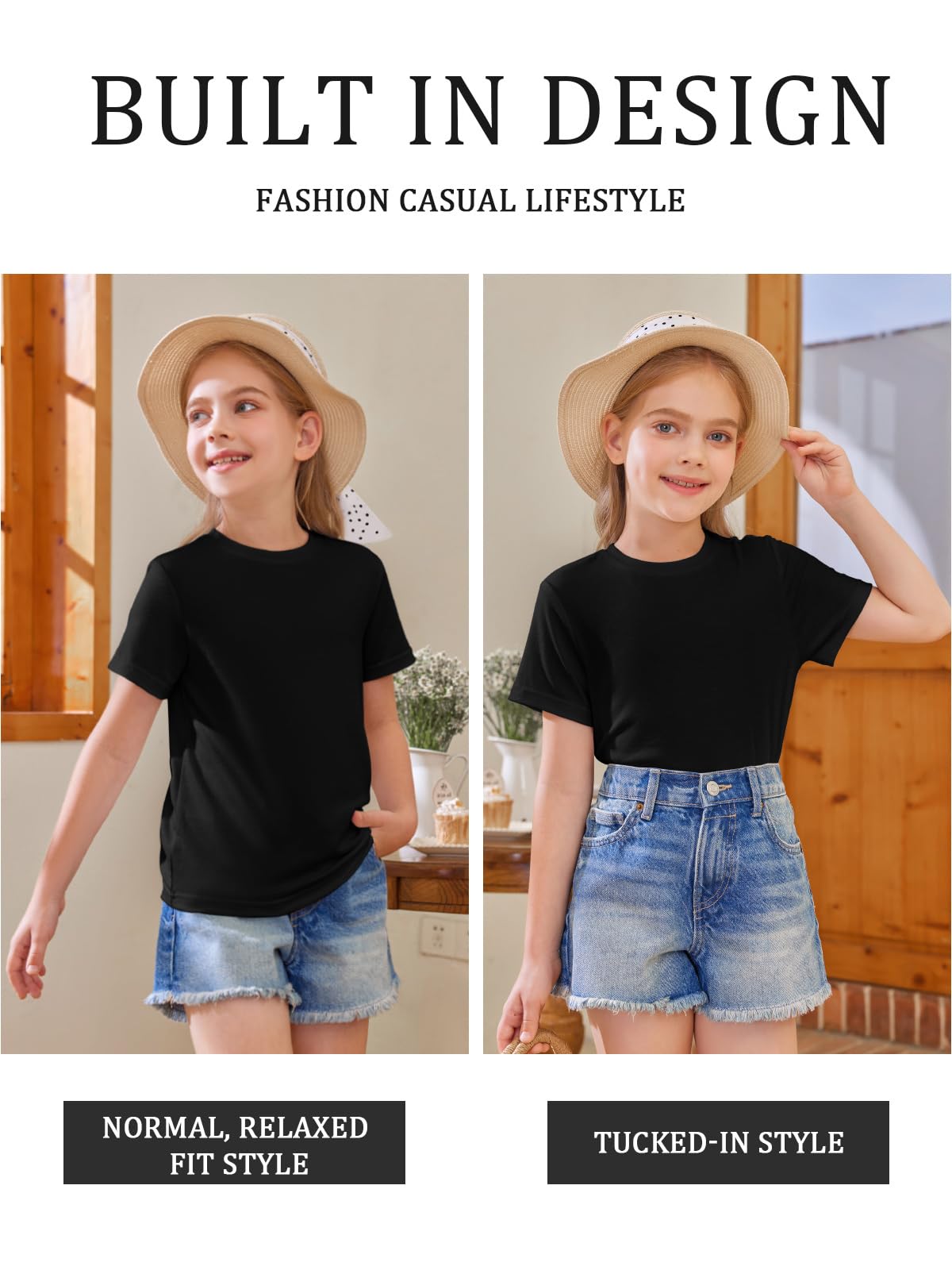 Design: Girls summer t-shirt, casual solid color tee tops, classic round neck and regular length, ,it's a good choice for slim kids.The loose fit provides a comfortable fit for ease of wear and movement. Don't worry about showing your belly when you play