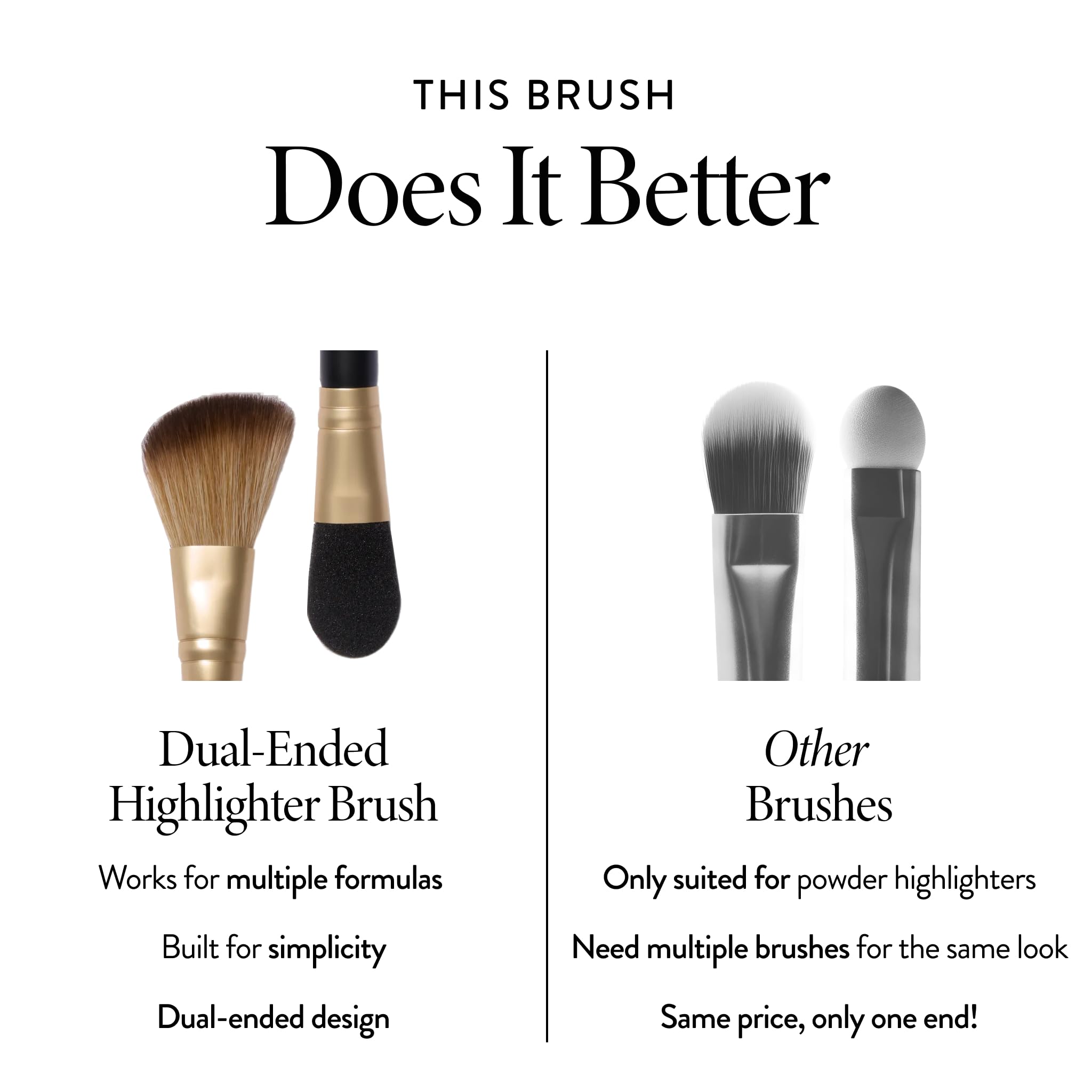 DUAL-ENDED HIGHLIGHTER BRUSH: Bring your natural beauty to light with this dual-ended two-in-one makeup brush for highlighting that includes fluffy angled bristles and a satin puff.