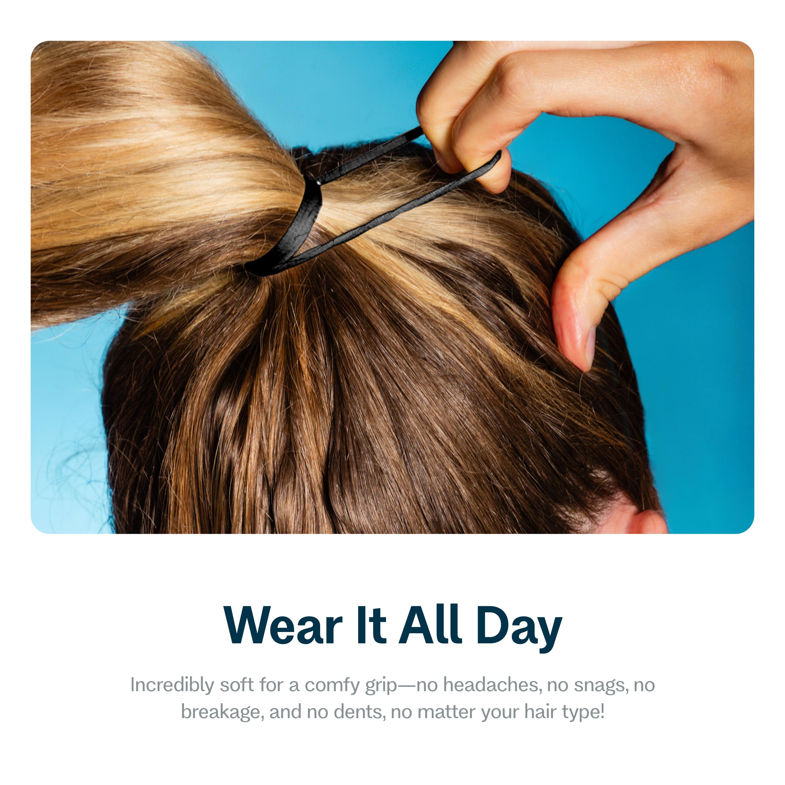 Gentle Hold: Seamless construction eliminates snagging and breakage; specially engineered elastic bands distribute tension evenly for comfortable all-day wear, boasting a gentle hair tie feel